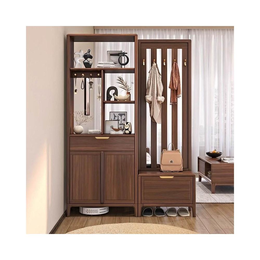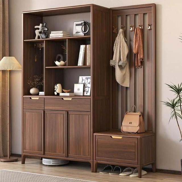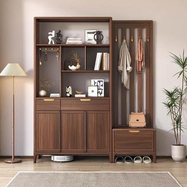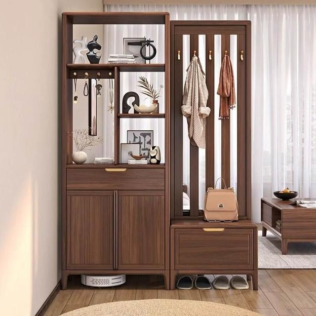 ✨超低下殺✨新中式實木間廳櫃鞋櫃一體黑胡桃木現代輕奢入戶隔斷櫃客廳玄關櫃