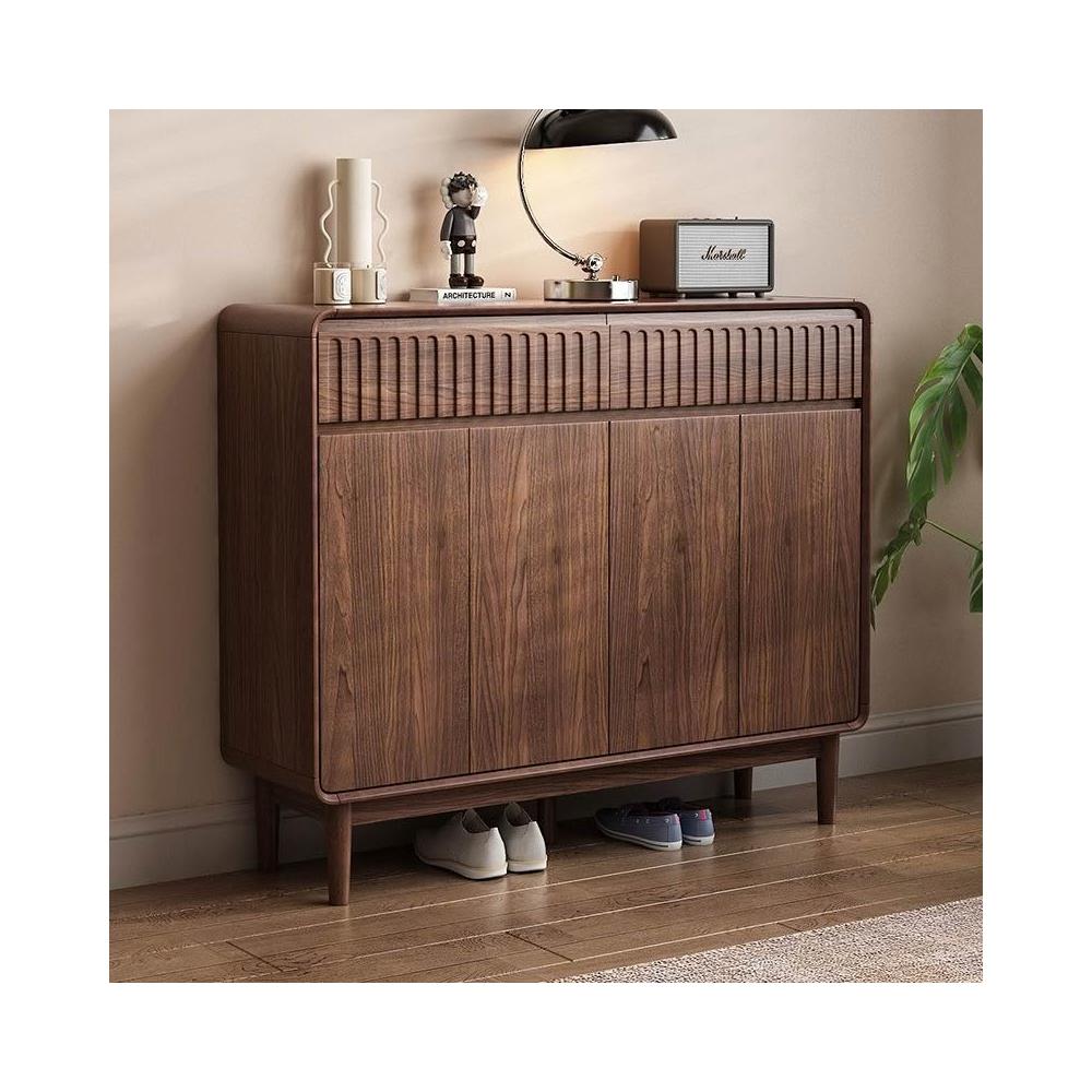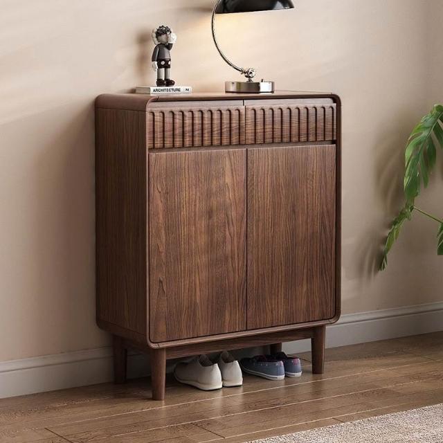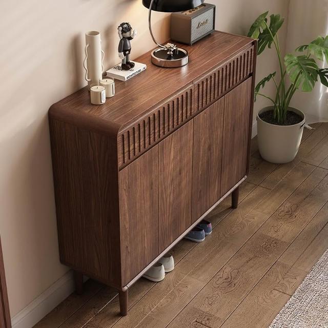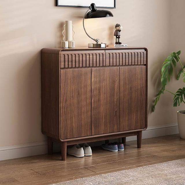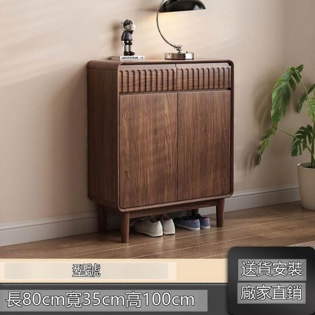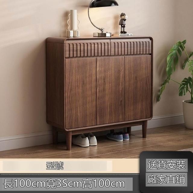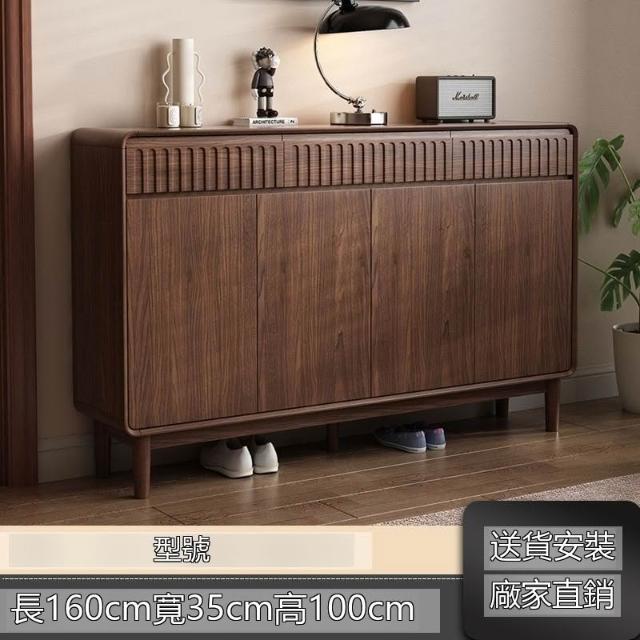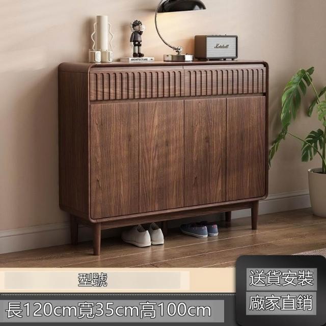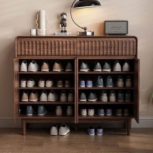 新中式實木鞋櫃家用門口胡桃色大容量進門靠牆玄關新款抽屜收納