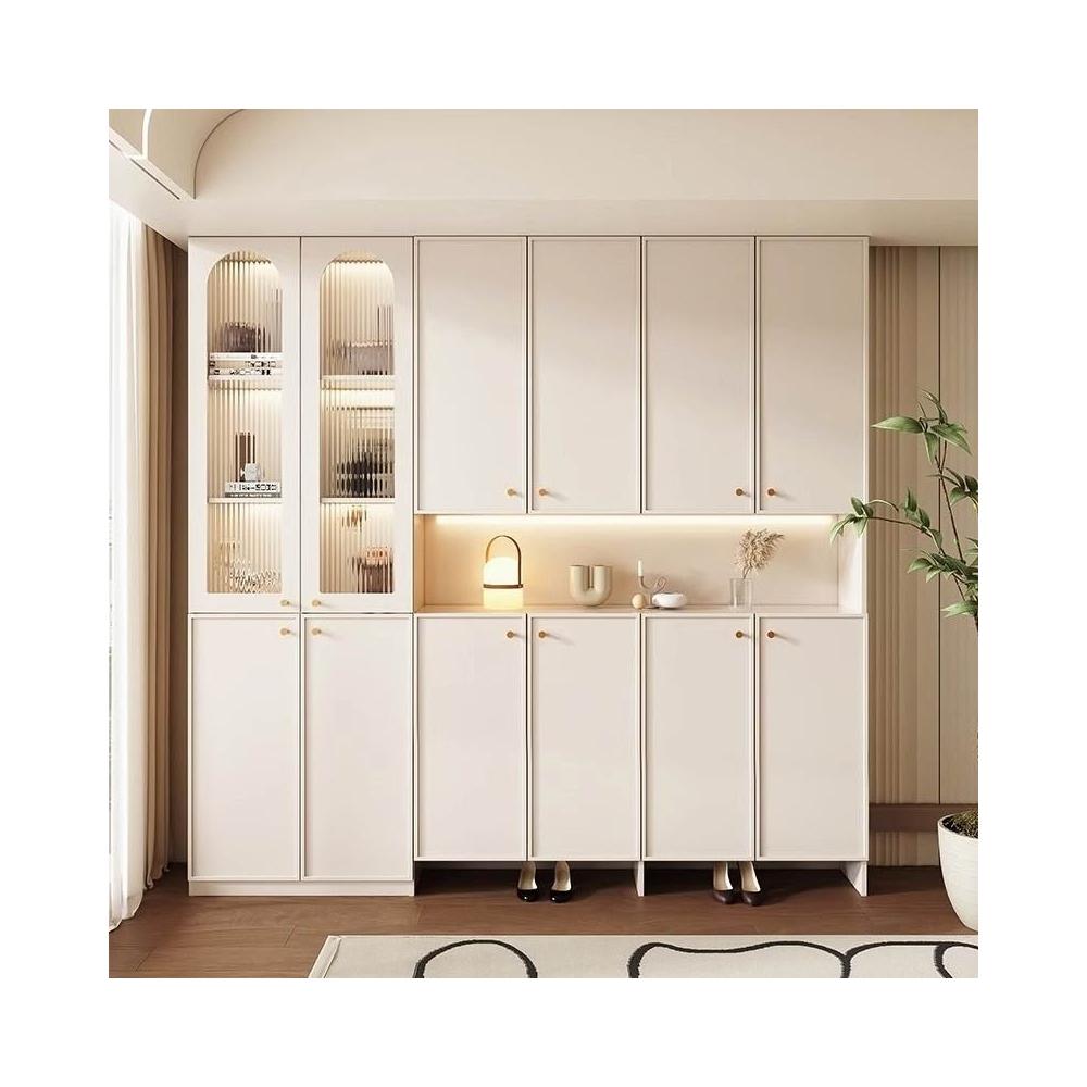 定制鞋櫃玄關櫃一體法式奶油風2024新款入戶進門靠牆實木儲物櫃