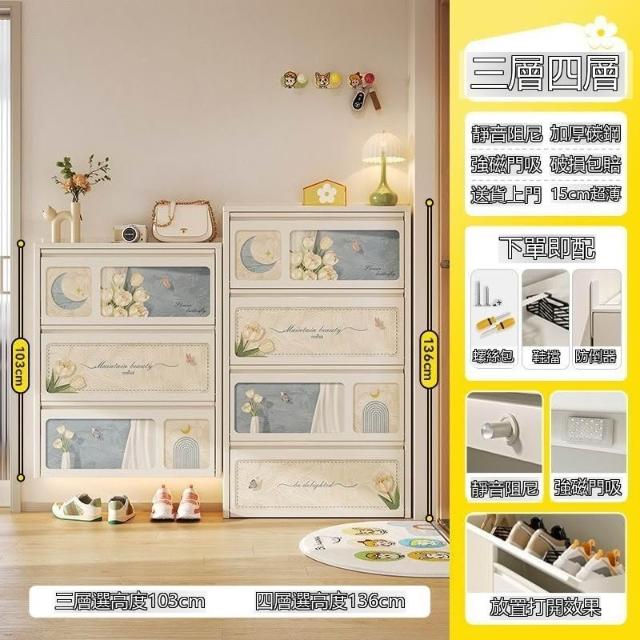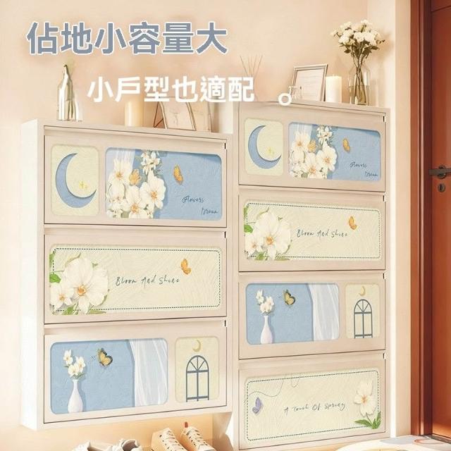 超薄鞋櫃家用奶油風印花鋼制翻鬥儲物櫃極窄門口入戶玄關一體靠牆