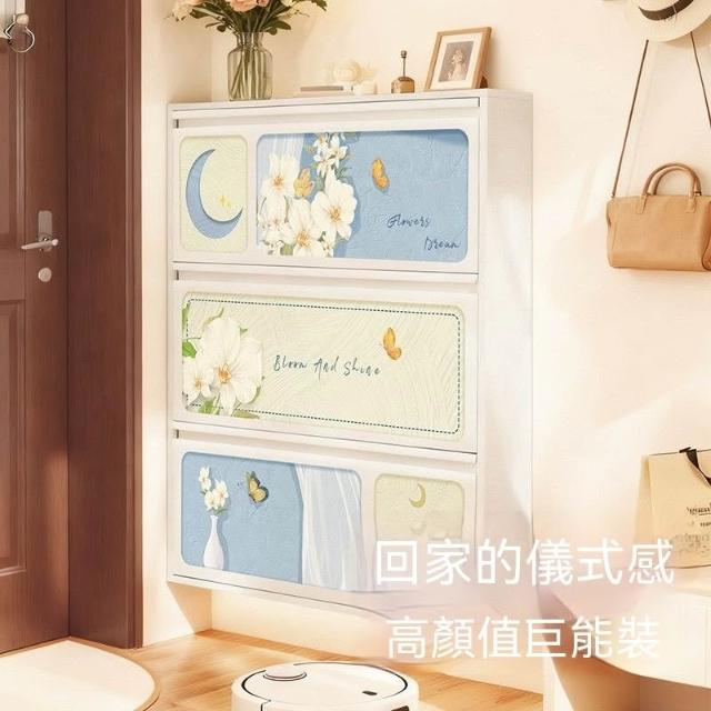 超薄鞋櫃家用奶油風印花鋼制翻鬥儲物櫃極窄門口入戶玄關一體靠牆