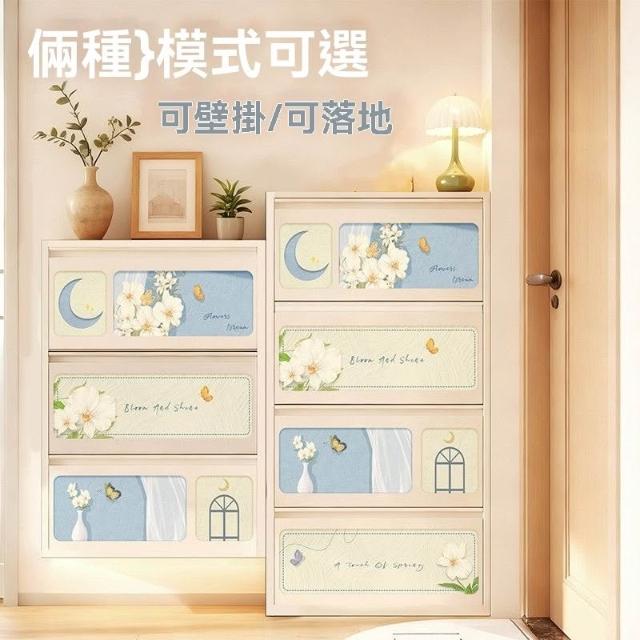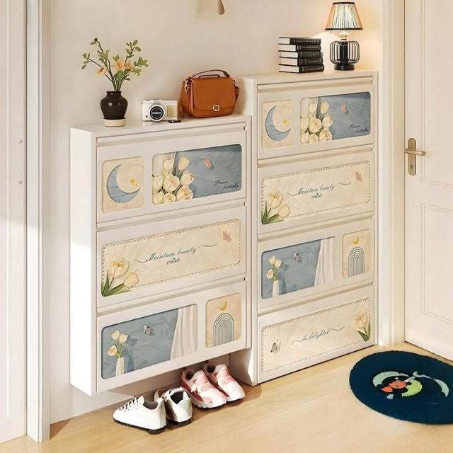 超薄鞋櫃家用奶油風印花鋼制翻鬥儲物櫃極窄門口入戶玄關一體靠牆