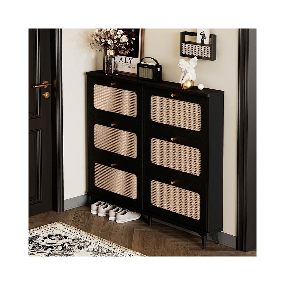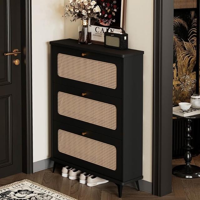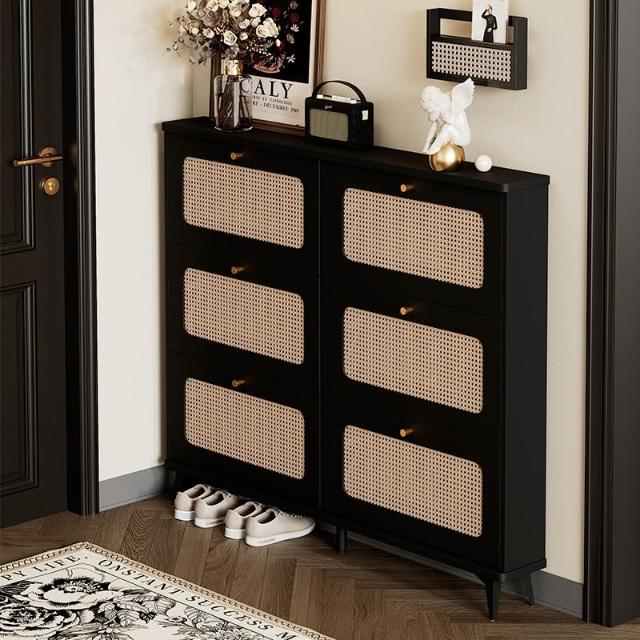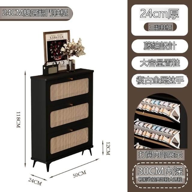 ✨超低下殺✨新款復古藤編鞋櫃大容量門口家用超薄翻鬥玄關櫃靠牆入戶客廳收納