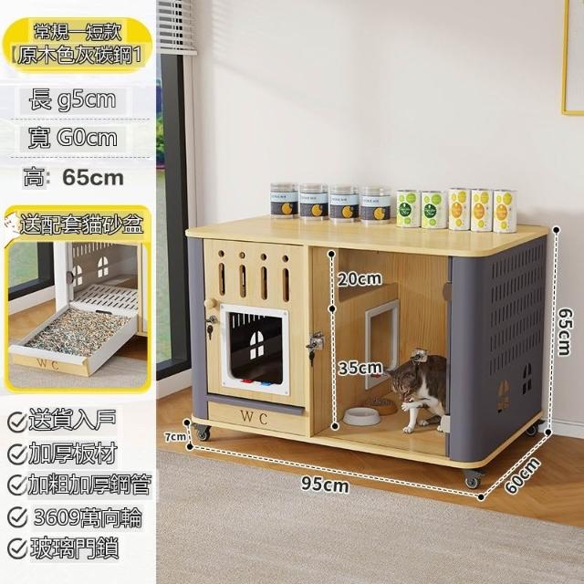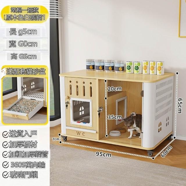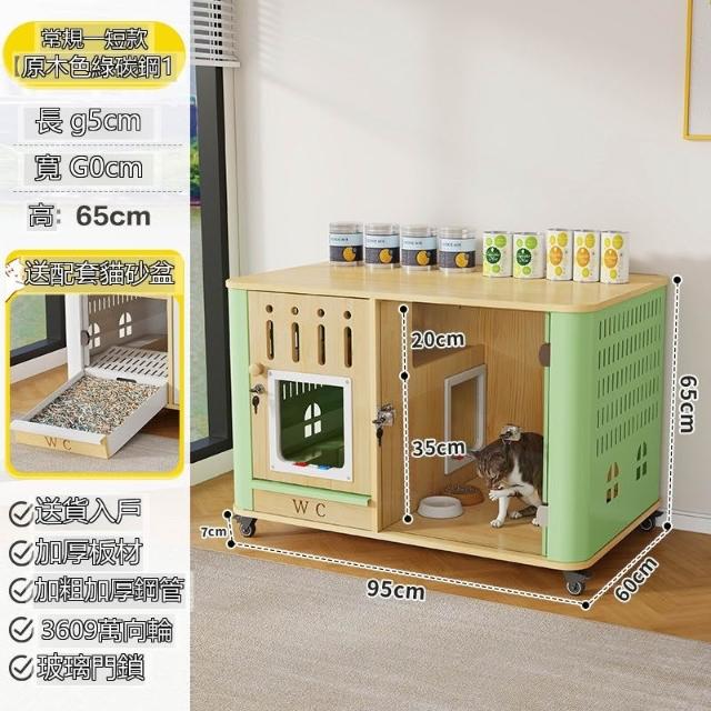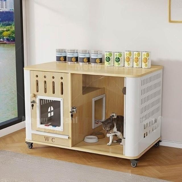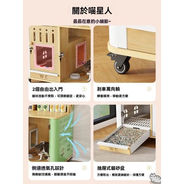 ✨超低下殺✨貓籠子實木家用室內貓窩貓砂盆帶廁所一體貓屋寵物小型貓舍貓別墅