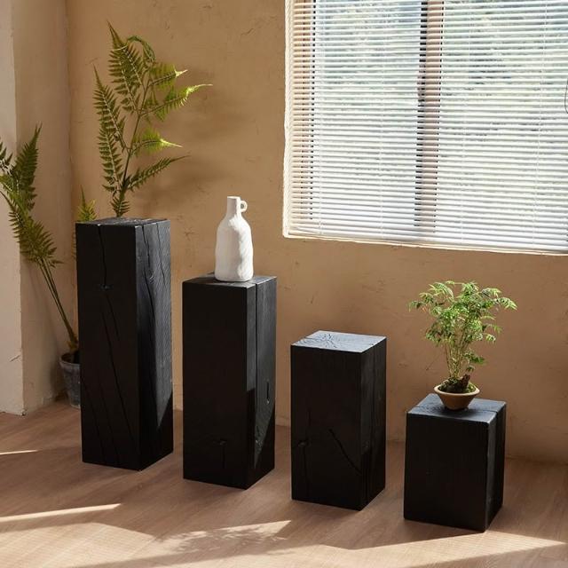 實木墩子碳化黑色北歐原木凳子民宿邊幾木樁擺件根雕底座花架矮凳