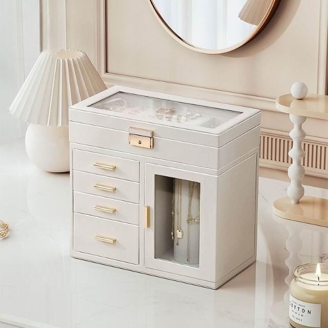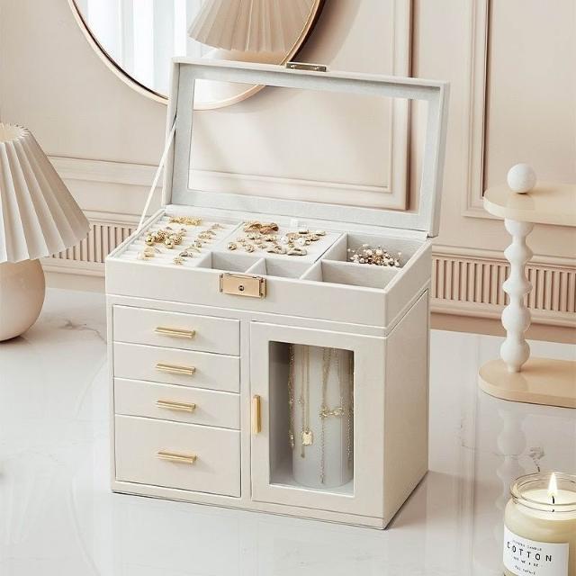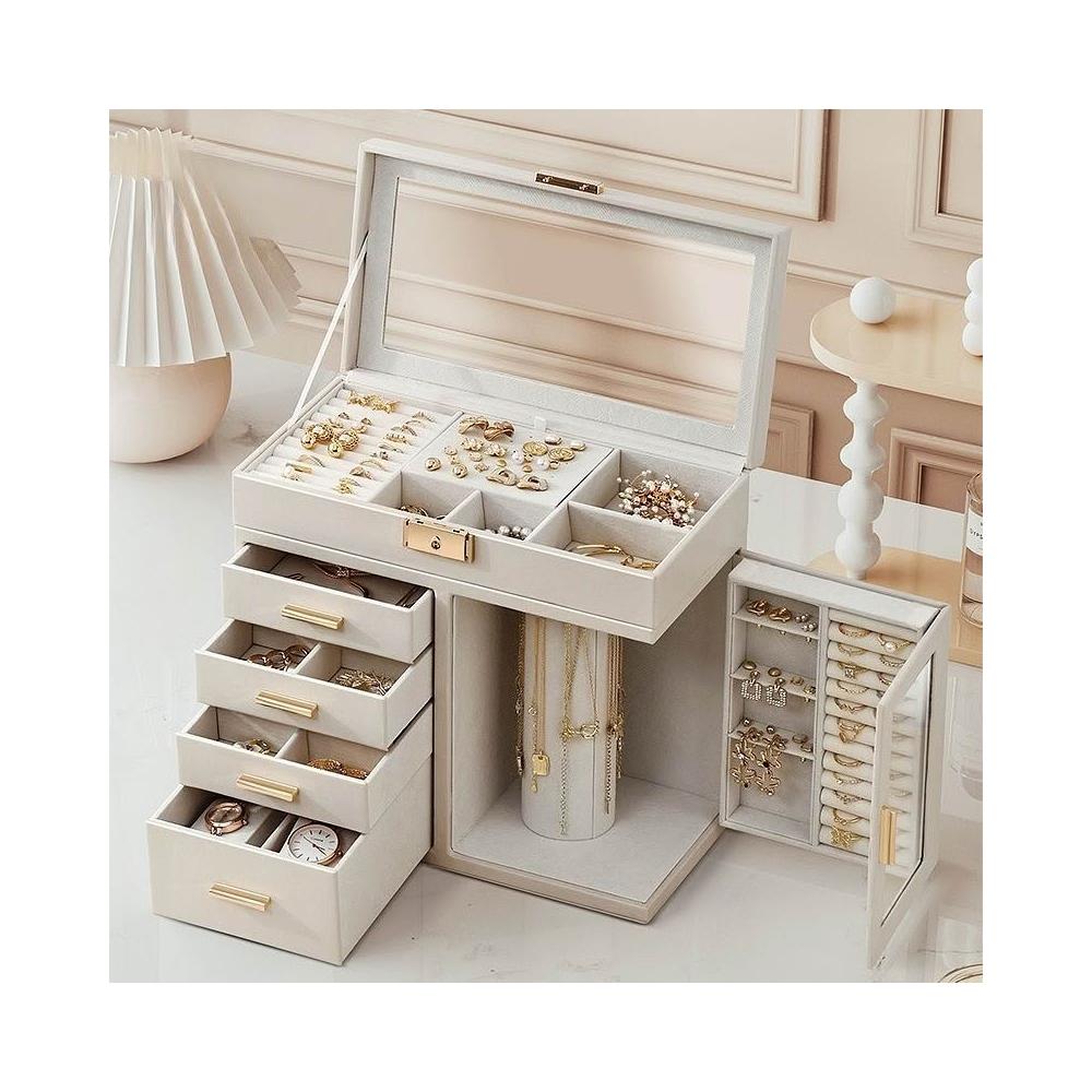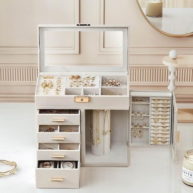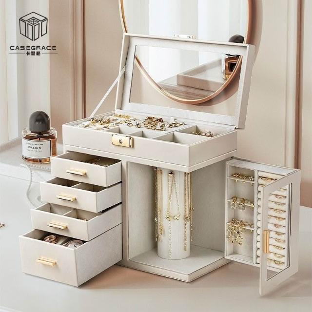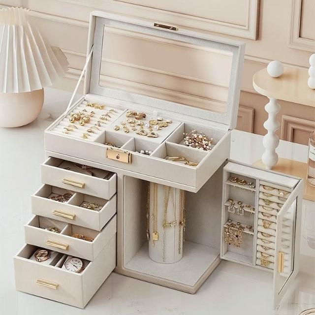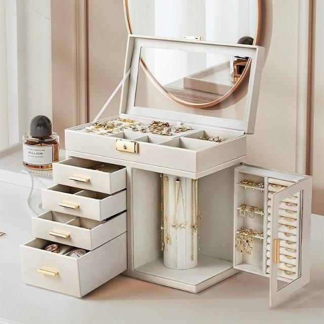 ✨超低下殺✨化妝師首飾盒大容量原創設計項鏈耳環旋轉皮革首飾收納盒