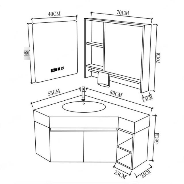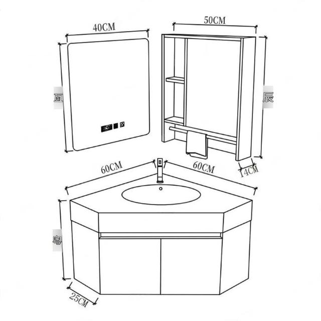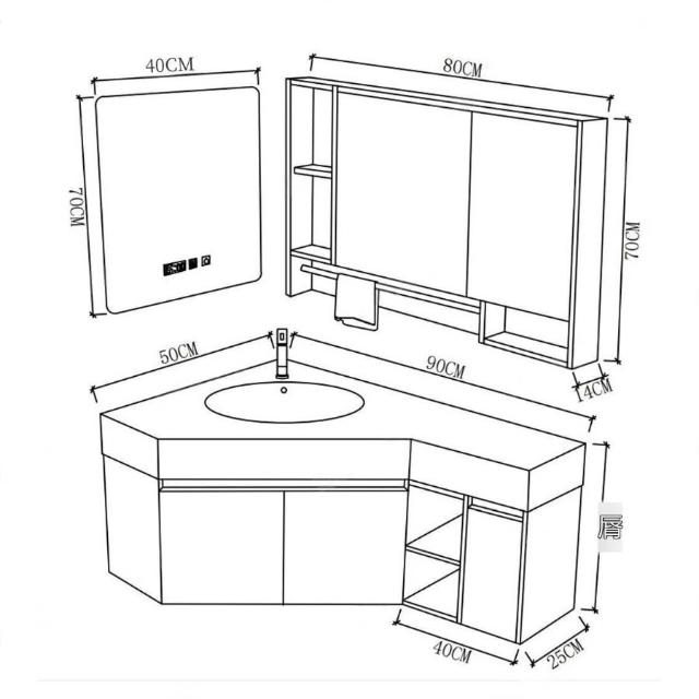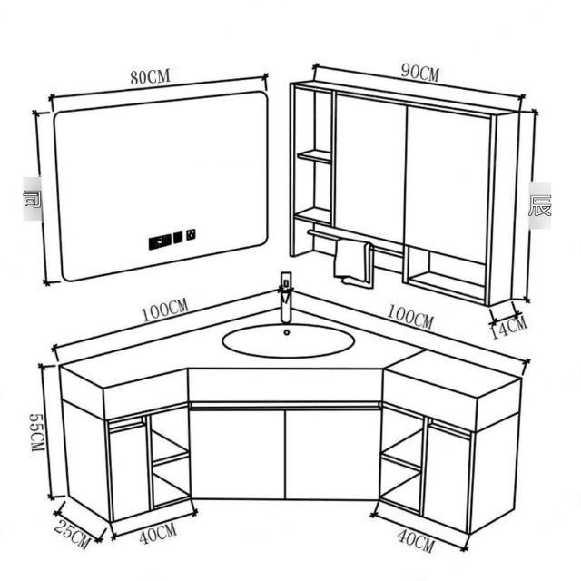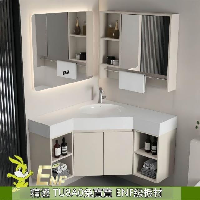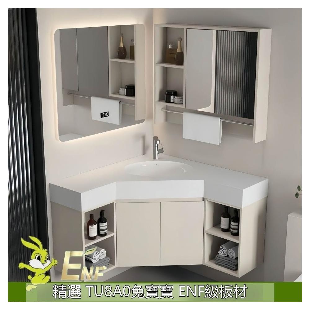 ✨超低下殺✨三角形浴室櫃組合定制小戶型轉角異型實木衛生間洗手洗臉盆櫃一體
