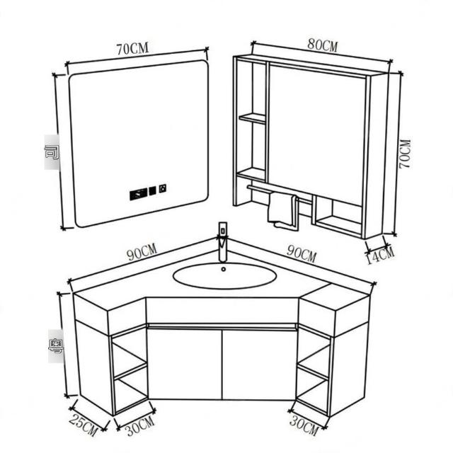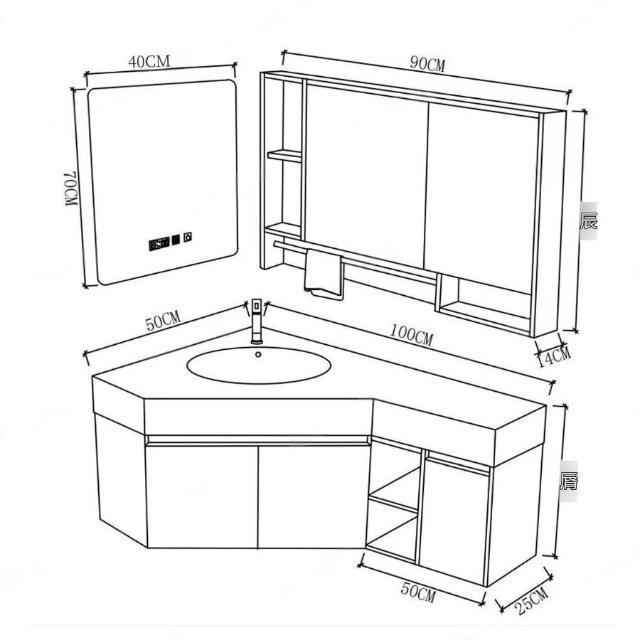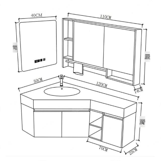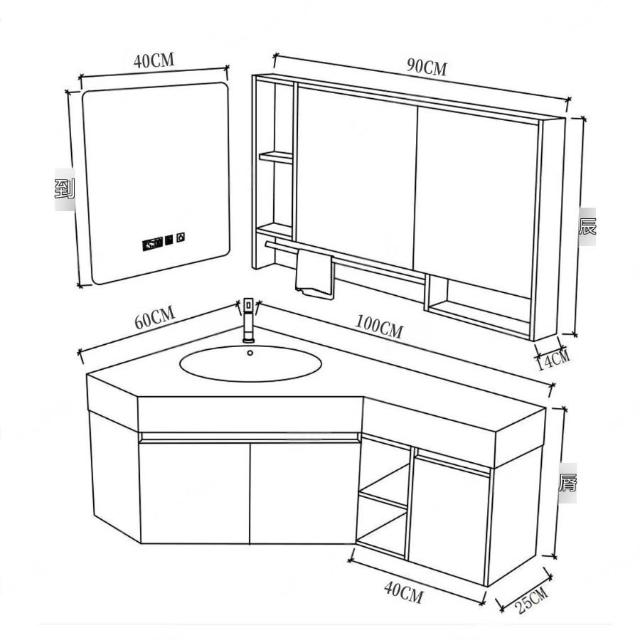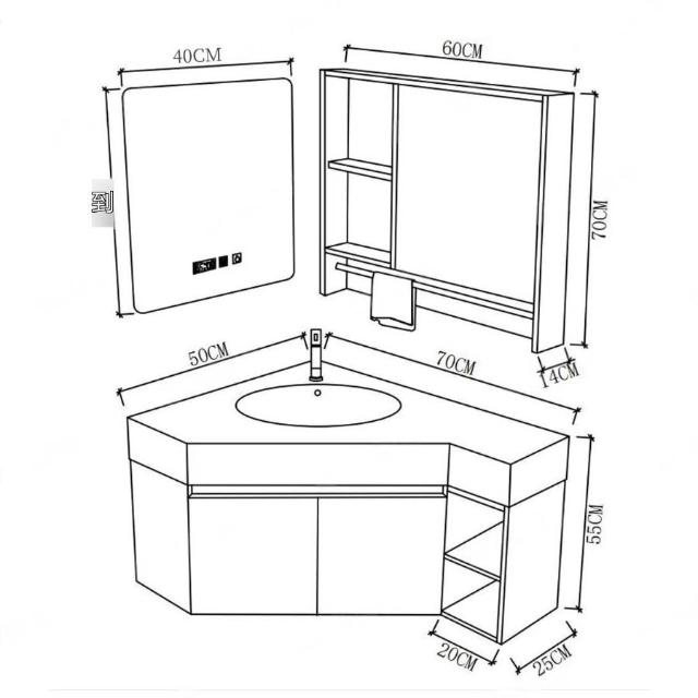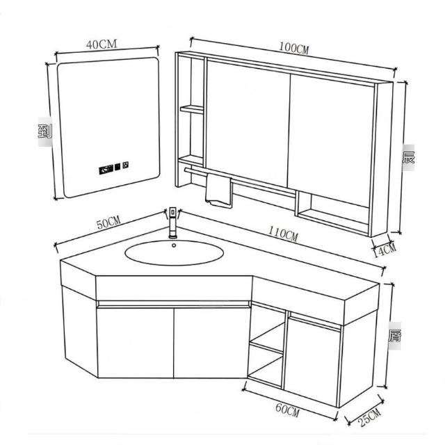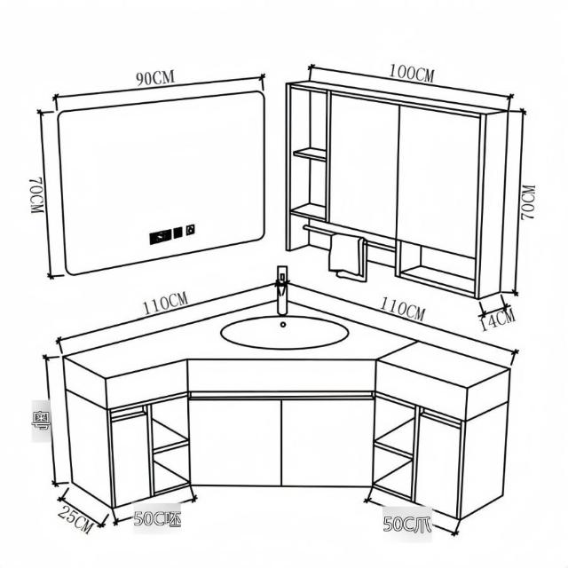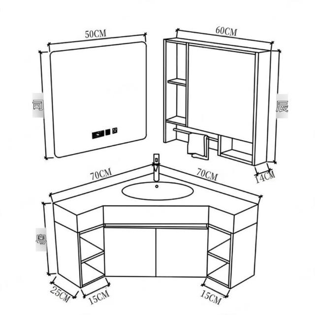 ✨超低下殺✨三角形浴室櫃組合定制小戶型轉角異型實木衛生間洗手洗臉盆櫃一體