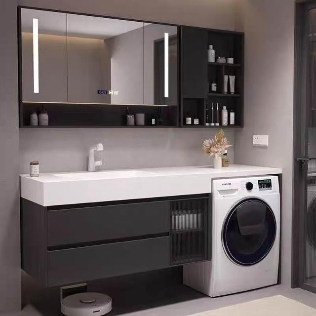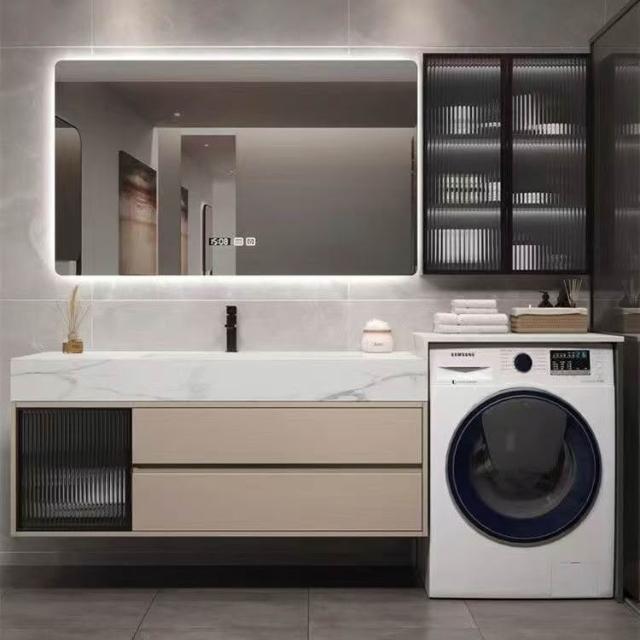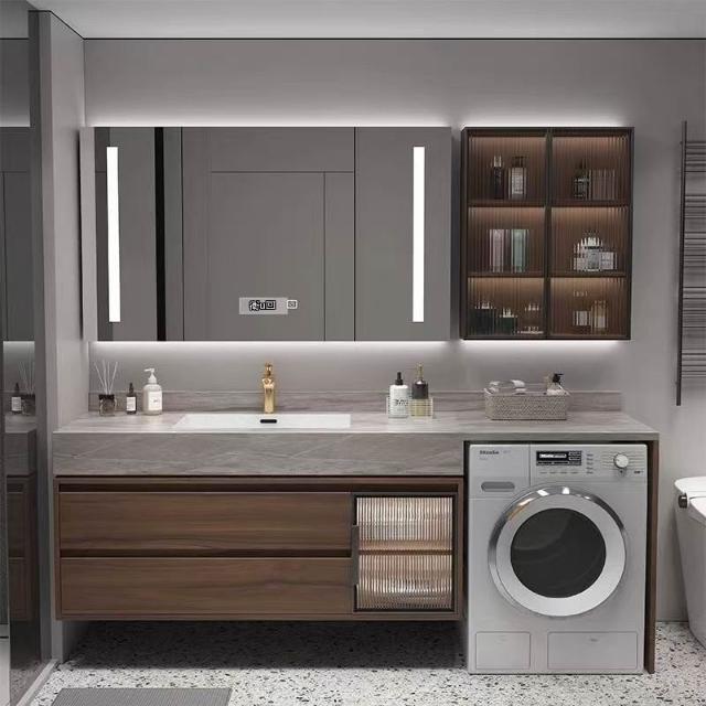 浴室櫃定制岩板無縫熱彎一體洗衣機櫃組合現代簡約洗臉盆洗衣伴侶