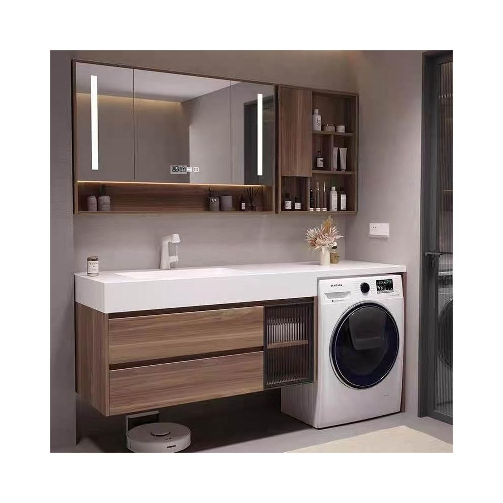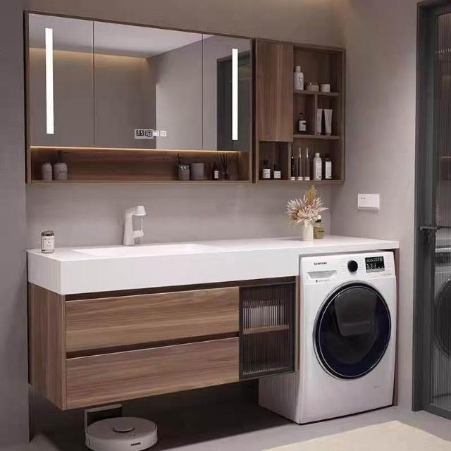 浴室櫃定制岩板無縫熱彎一體洗衣機櫃組合現代簡約洗臉盆洗衣伴侶