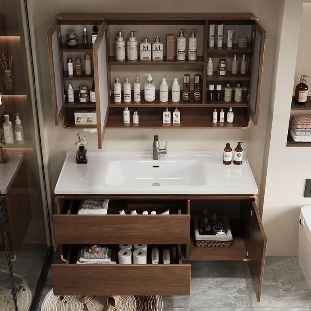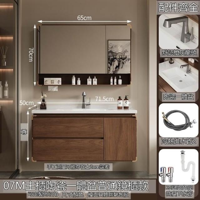 橡木簡約現代智能浴室櫃鏡櫃組合烤漆實木新中式衛生間洗漱臺陶瓷