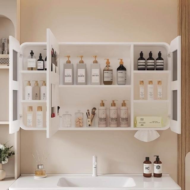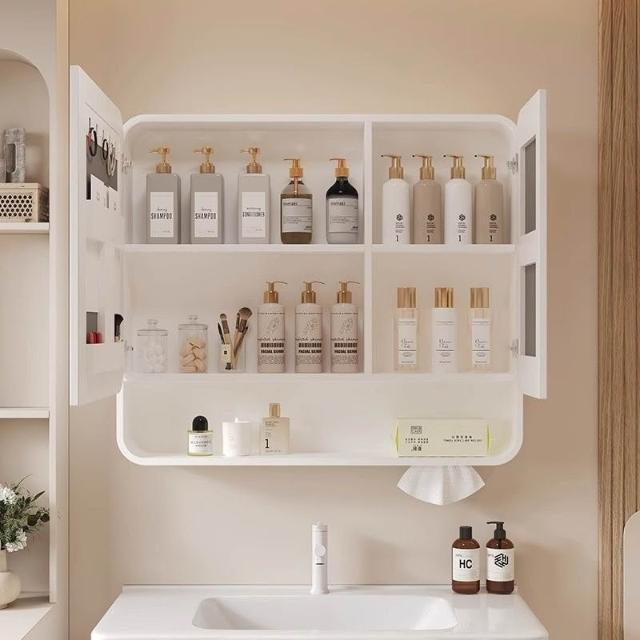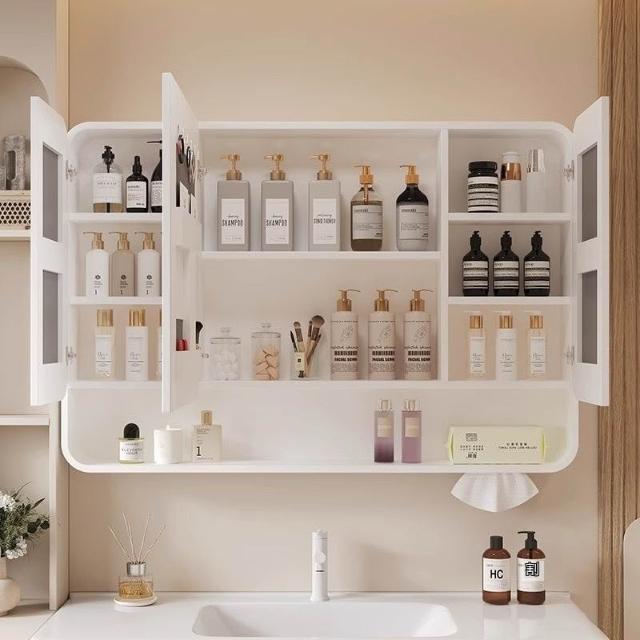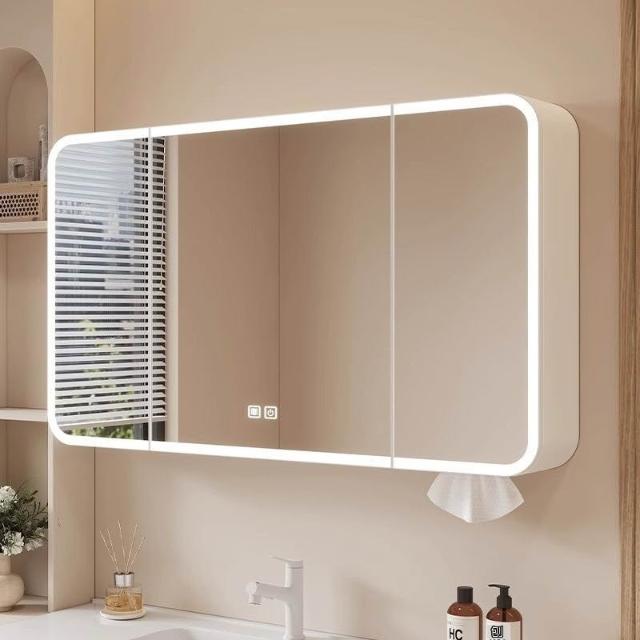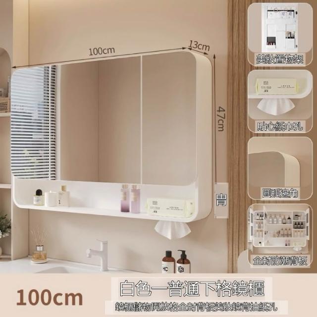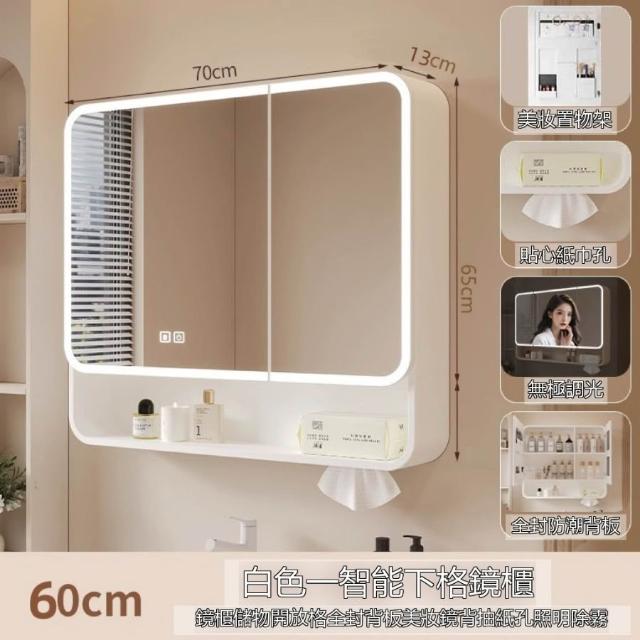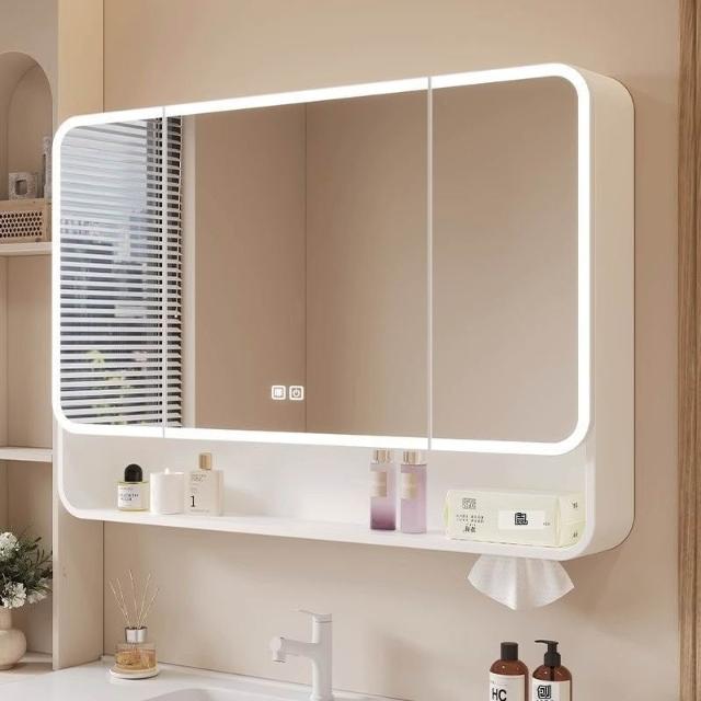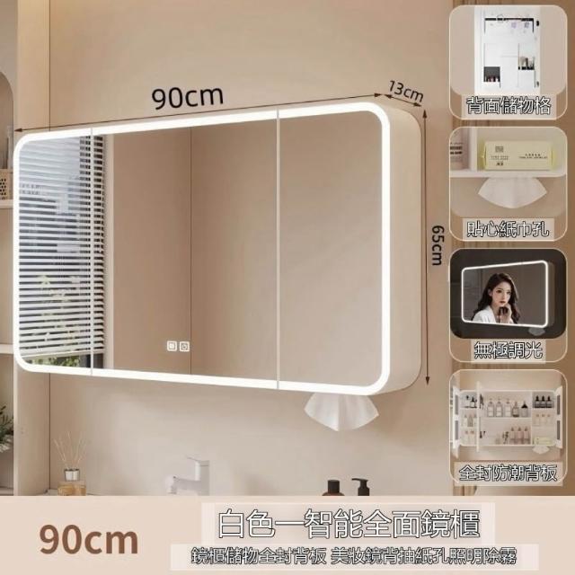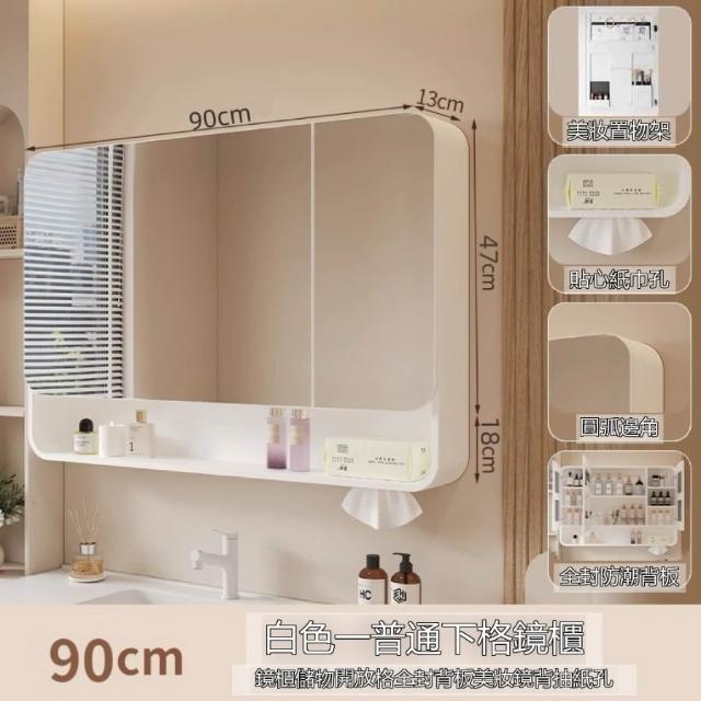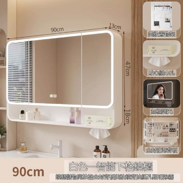 現代簡約衛生間浴室櫃智能加高雙開門全封閉鏡櫃鏡背美妝掛牆式