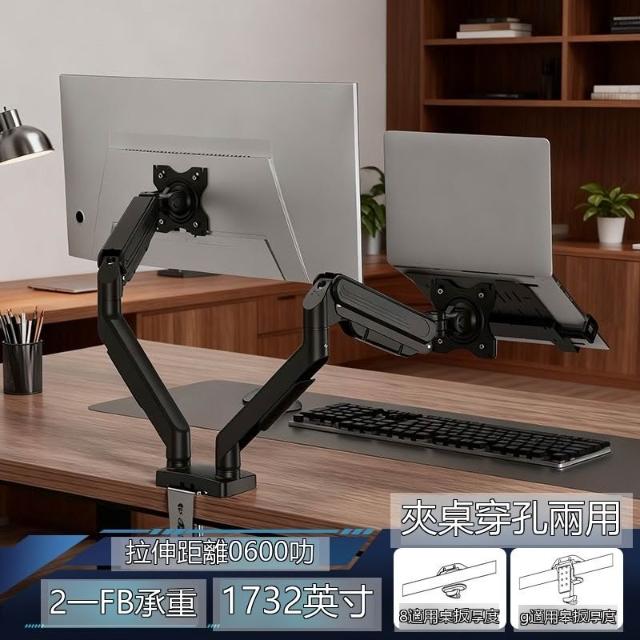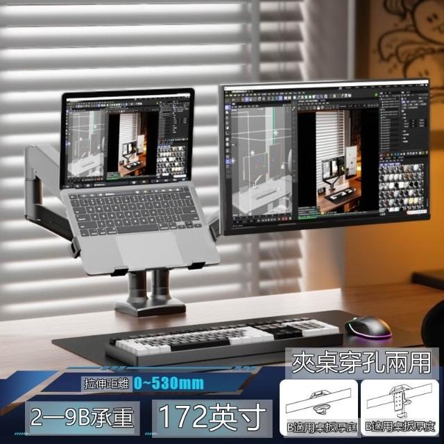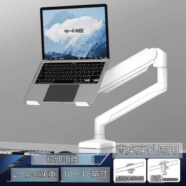 ✨超低下殺✨筆記本電腦支架白色機械臂懸臂電腦增高架升降旋轉懸空雙屏二合一