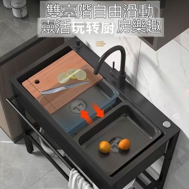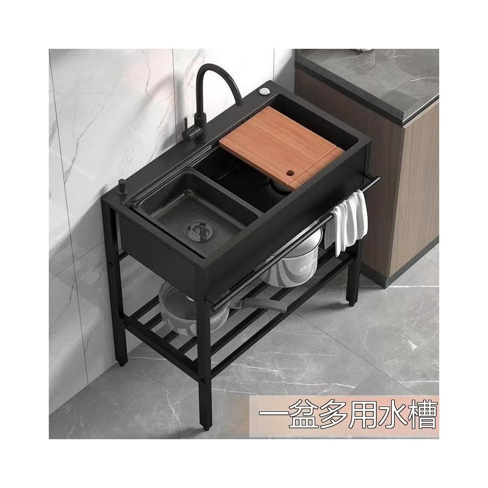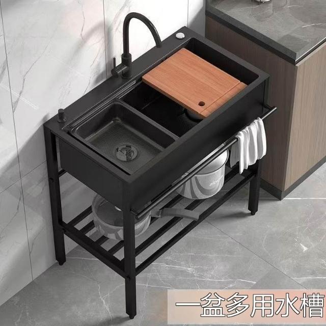 廚房水槽洗菜盆家用洗碗水池不銹鋼蜂窩水槽帶支架水盆陽臺洗手盆