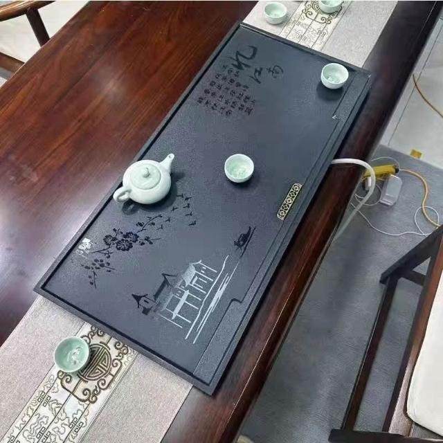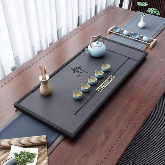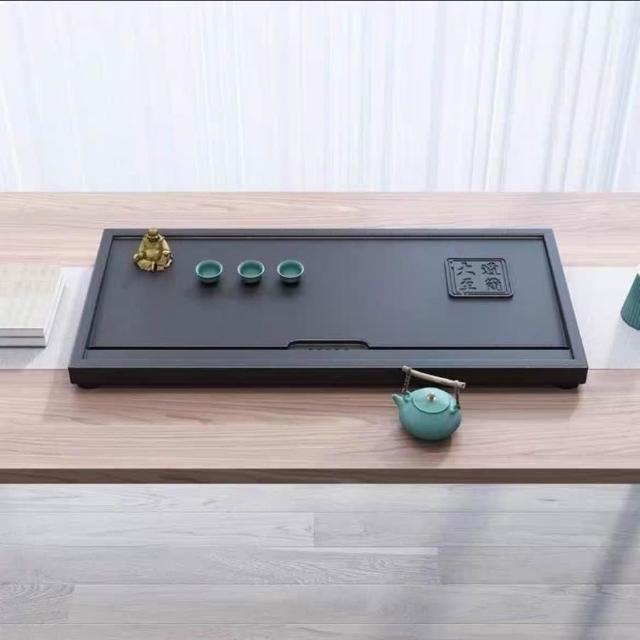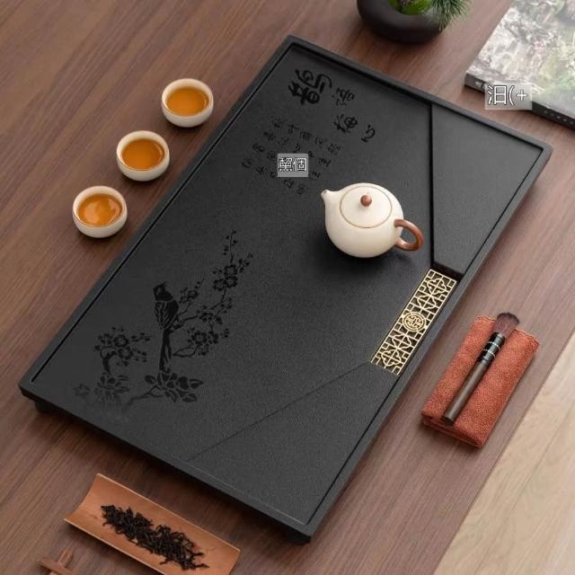 ✨超低下殺✨新款中式整塊茶盤合成烏金石辦公家用茶具全套排水一體兩用茶盤
