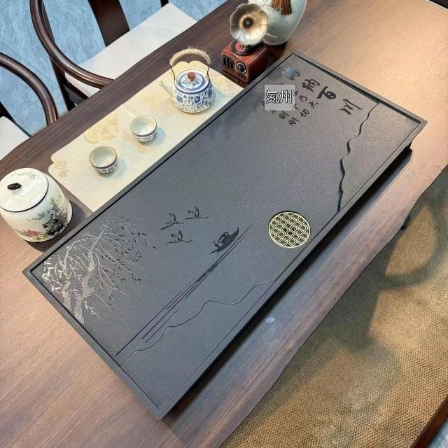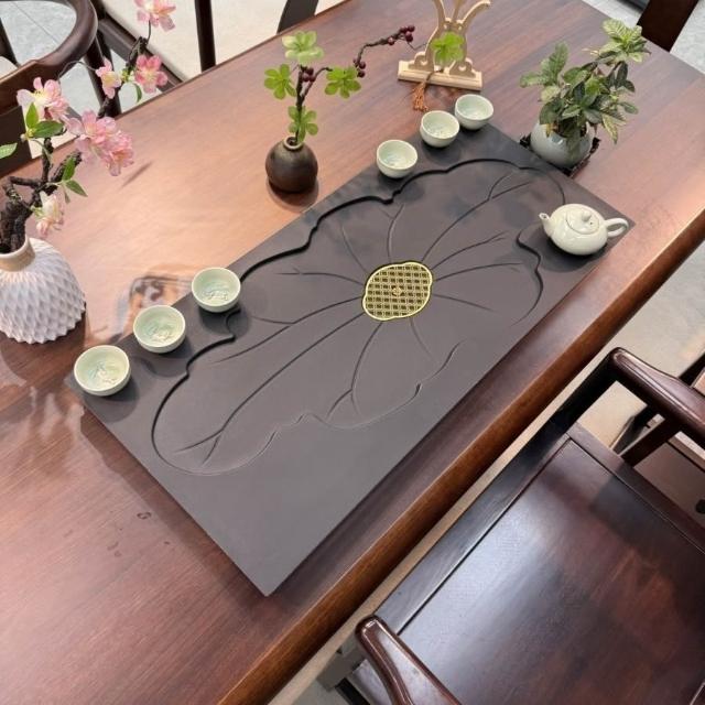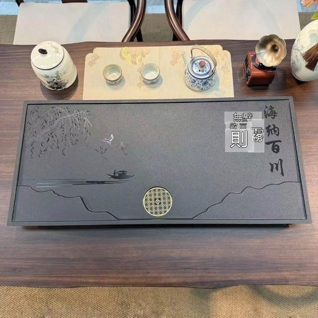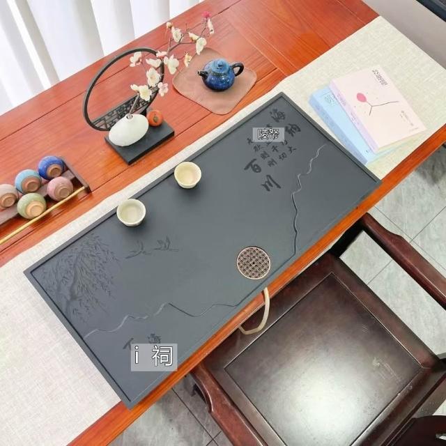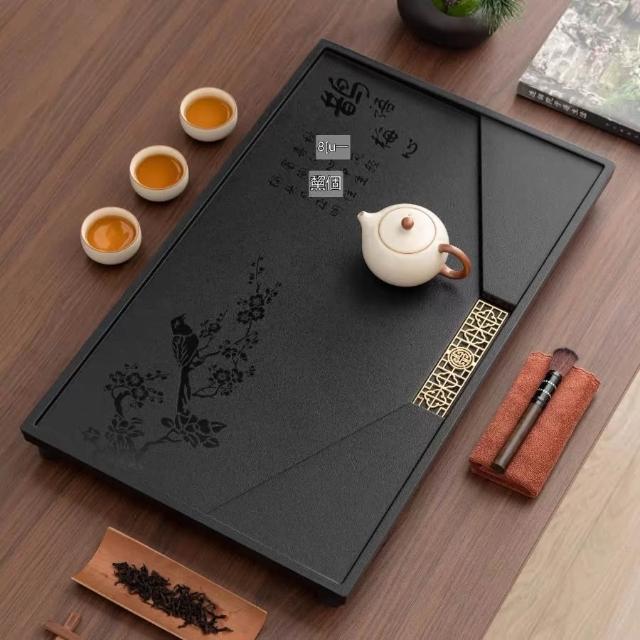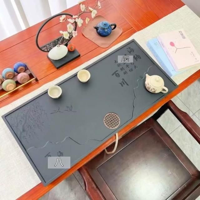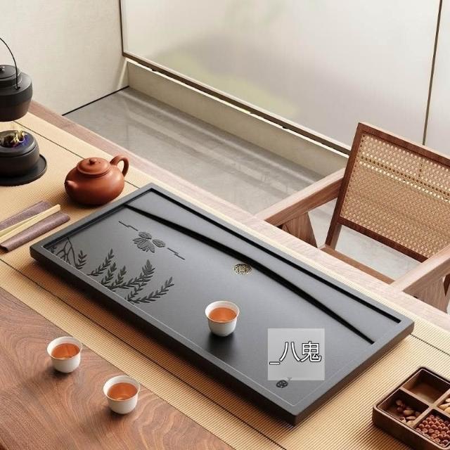 ✨超低下殺✨新款中式整塊茶盤合成烏金石辦公家用茶具全套排水一體兩用茶盤