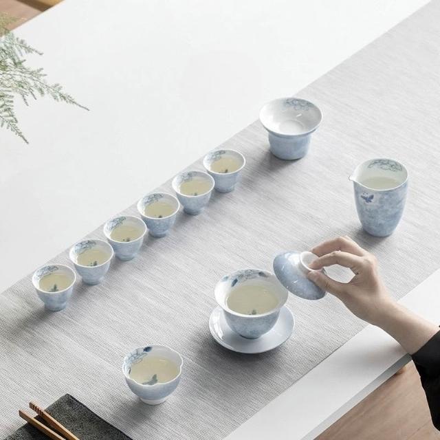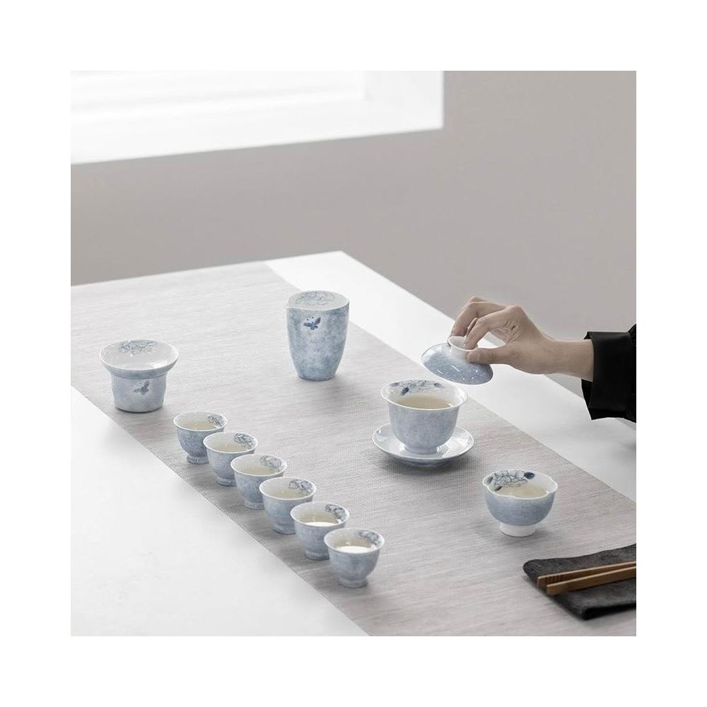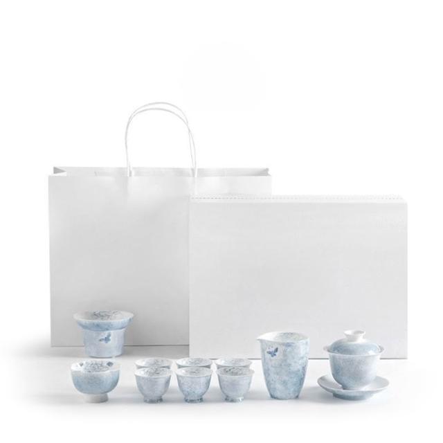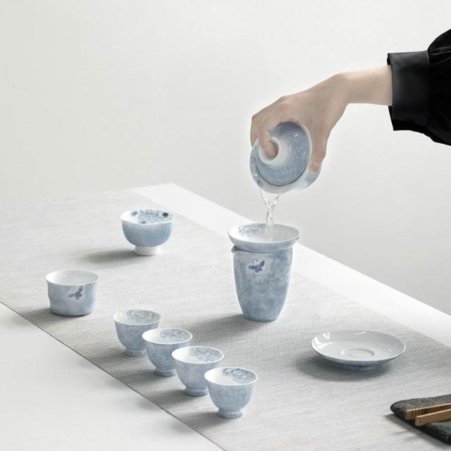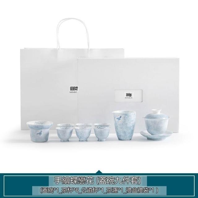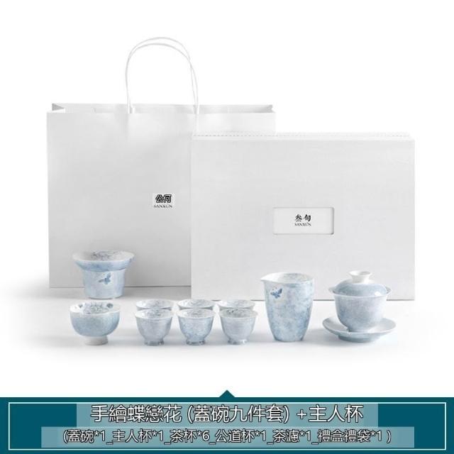 ✨超低下殺✨手繪蝶戀花功夫茶具套裝家用蓋碗陶瓷泡茶輕奢高檔茶藝禮盒裝