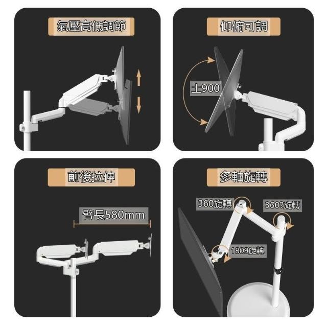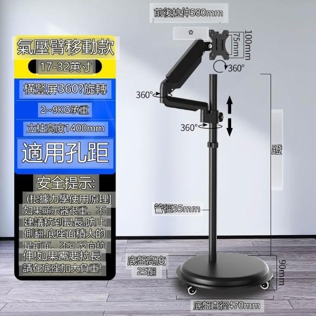 ✨穩固支撐✨17-32寸躺著看顯示器支架落地萬向移動旋轉氣動適用明基小派屏