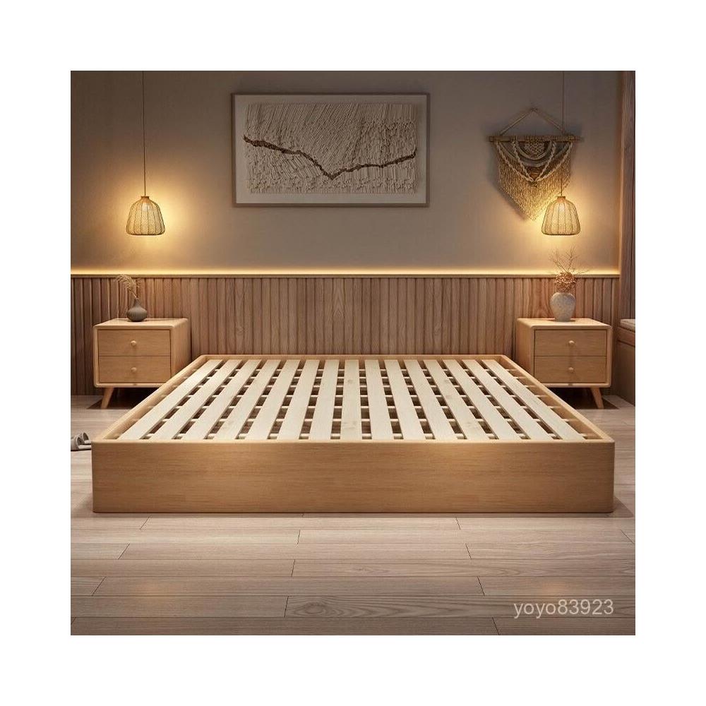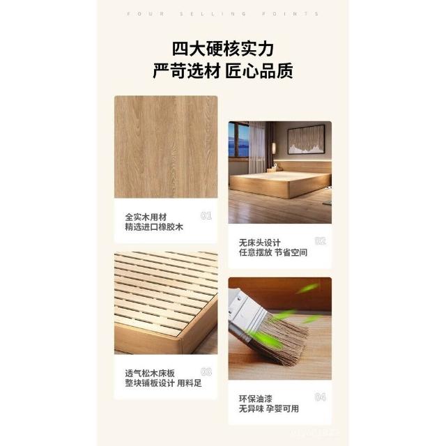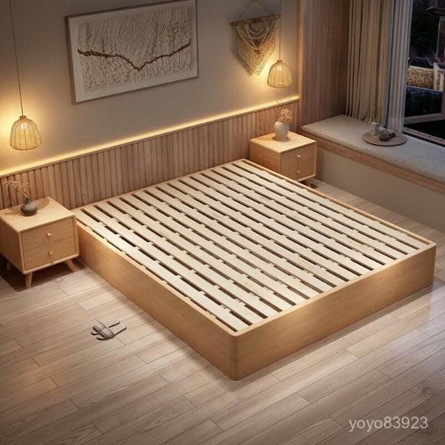 靈感家居 實木床榻榻米民宿酒店地臺床氣壓儲物大床2.2米任意尺寸排骨架床 VYYS