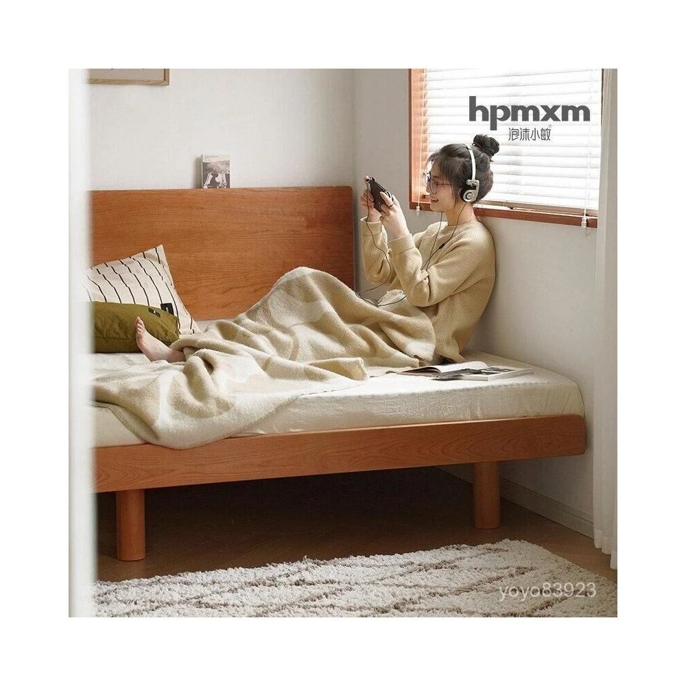 靈感家居 櫻桃木實木床1.5無床頭床1.8米小戶型塌塌米雙人齊邊床櫻桃木家具 SNWV