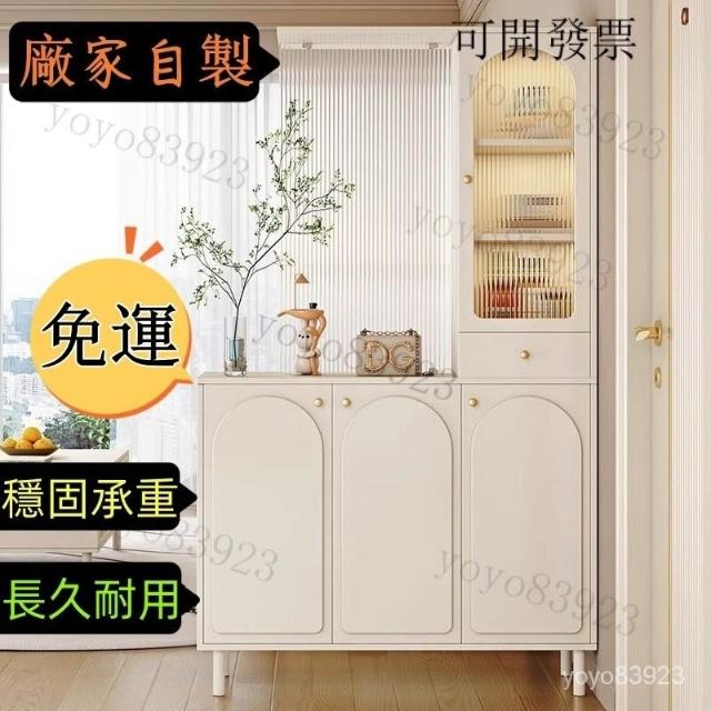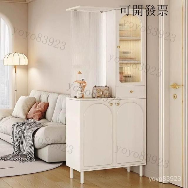 靈感家居 免運工廠直銷 玄關櫃入戶客廳高酒櫃長虹玻璃鞋櫃屏風一體奶油風現代玄關隔斷櫃 轉角櫃 落地櫃 鞋櫃 收納櫃 玄關櫃抽屜櫃