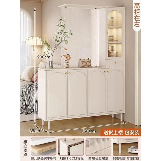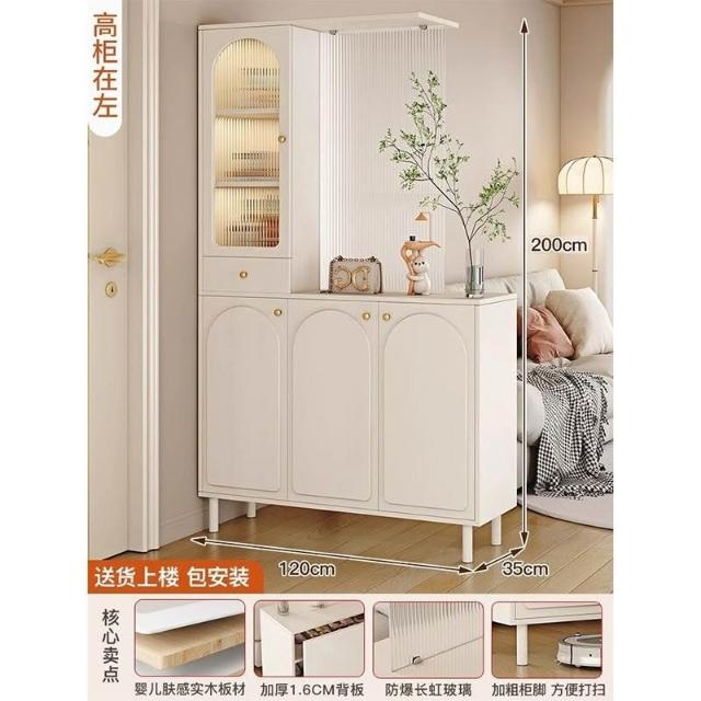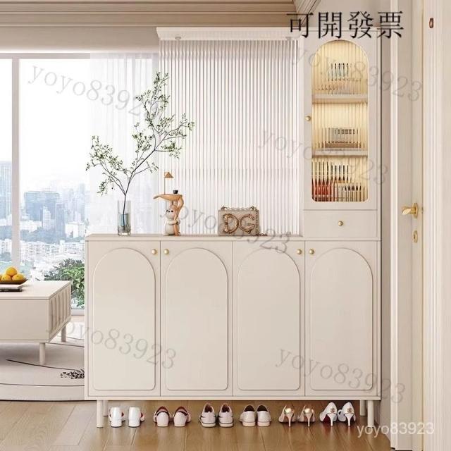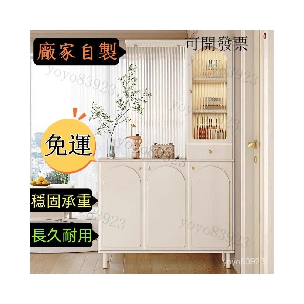 靈感家居 免運工廠直銷 玄關櫃入戶客廳高酒櫃長虹玻璃鞋櫃屏風一體奶油風現代玄關隔斷櫃 轉角櫃 落地櫃 鞋櫃 收納櫃 玄關櫃抽屜櫃