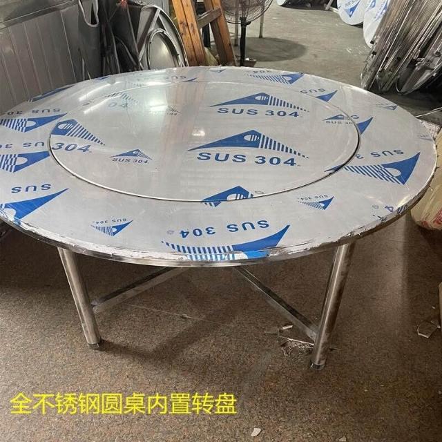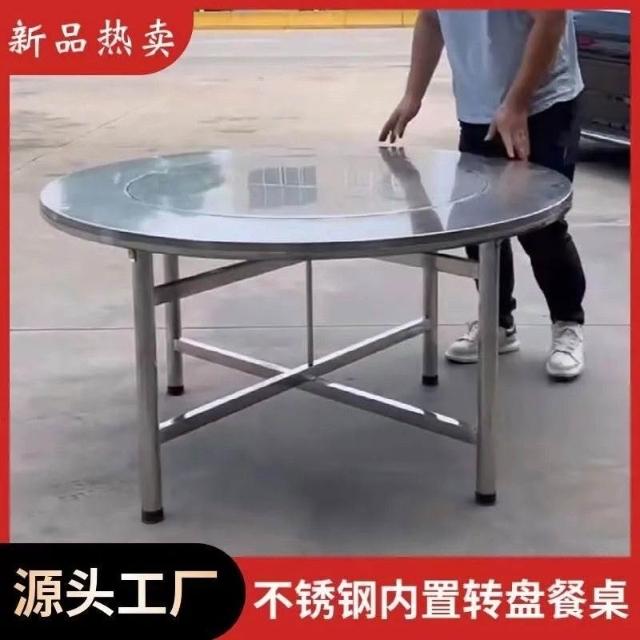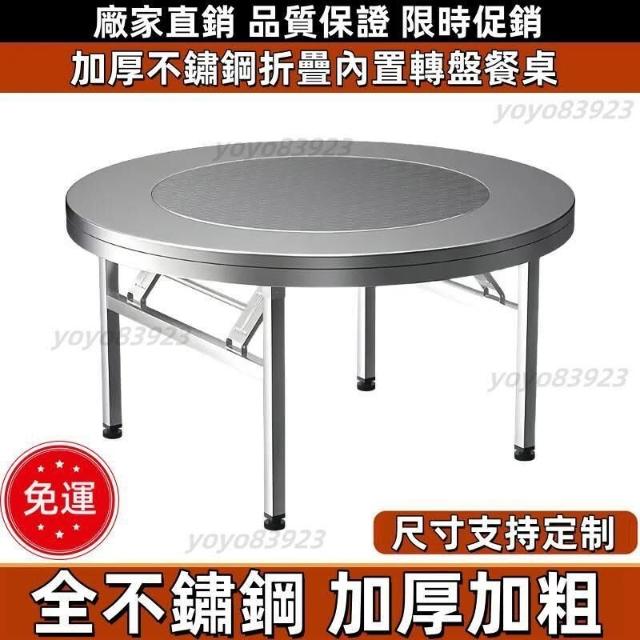 靈感家居 ✔免運✔不銹鋼餐桌內置轉盤分體連體桌子穩固耐用折疊大圓桌酒店餐桌桌子 白鐵桌 不鏽鋼桌 折疊桌 餐桌 特厚304不銹鋼圓
