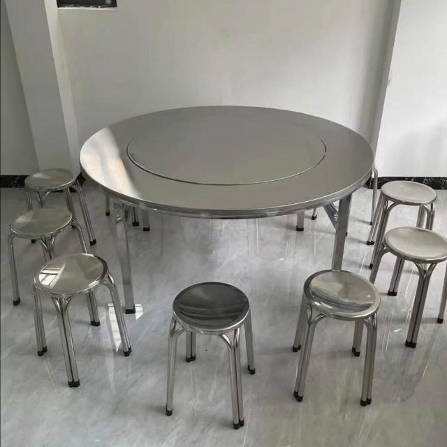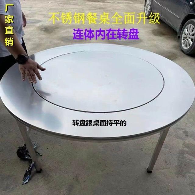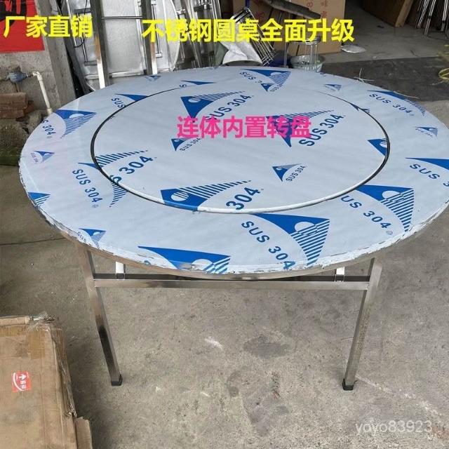 靈感家居 ✔免運✔不銹鋼餐桌內置轉盤分體連體桌子穩固耐用折疊大圓桌酒店餐桌桌子 白鐵桌 不鏽鋼桌 折疊桌 餐桌 特厚304不銹鋼圓