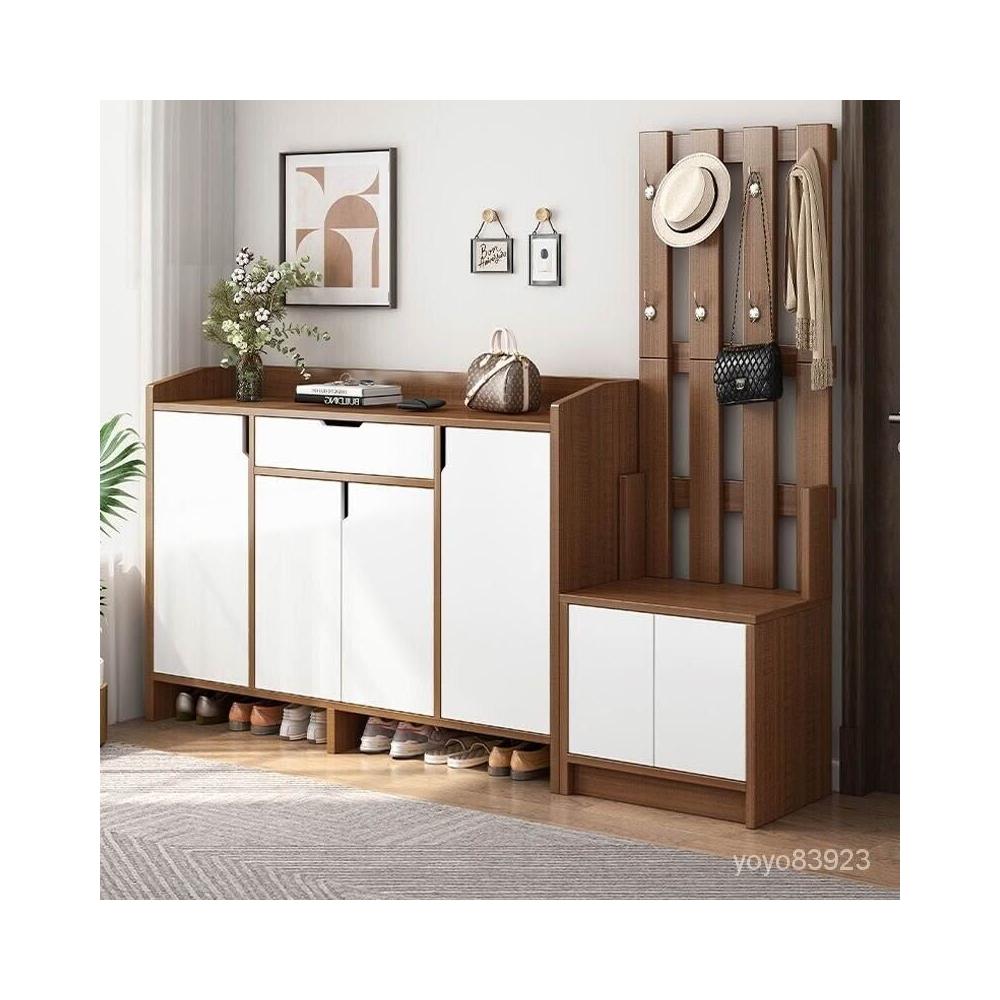 靈感家居 廠傢直供✨破損包賠 鞋櫃衣架一體落地傢用進門口靠墻衣帽櫃玄關櫃隔斷帶凳子可坐鞋架 玄關櫃 鞋櫃 壁掛櫃 落地櫃收納櫃