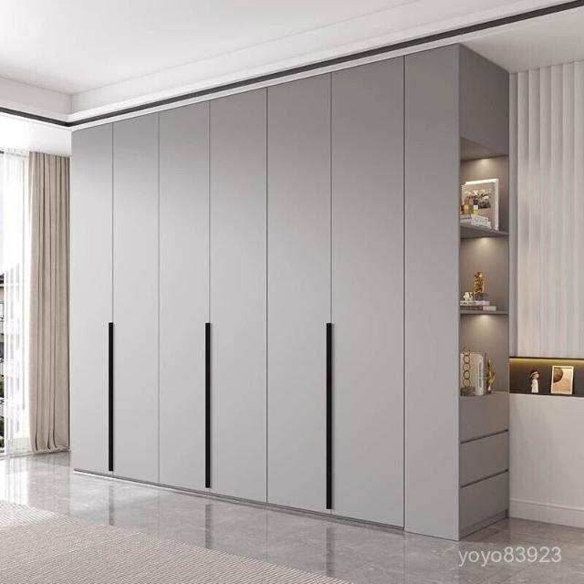 靈感家居 廠家直銷18mm實木顆粒闆一門到頂衣櫃家用臥室淺灰色收納櫃現代簡約衣櫥 ND1A