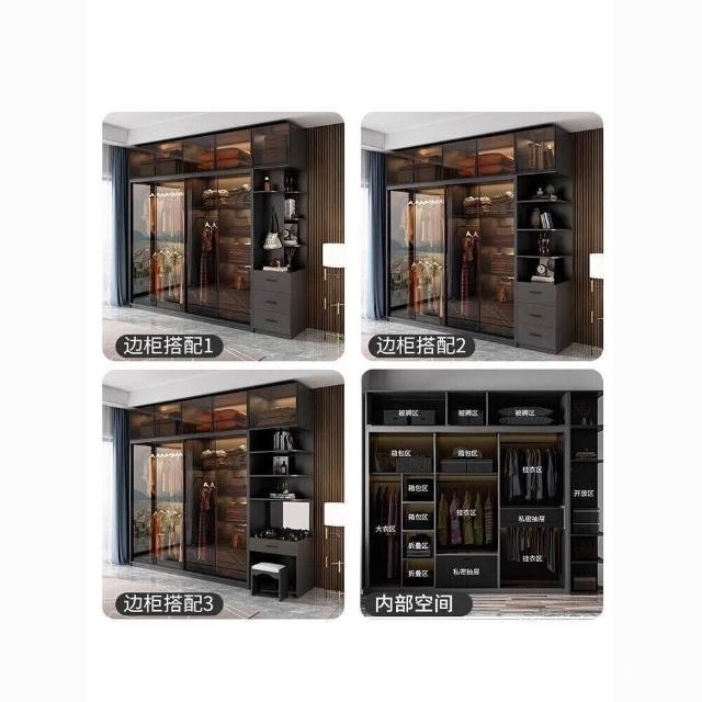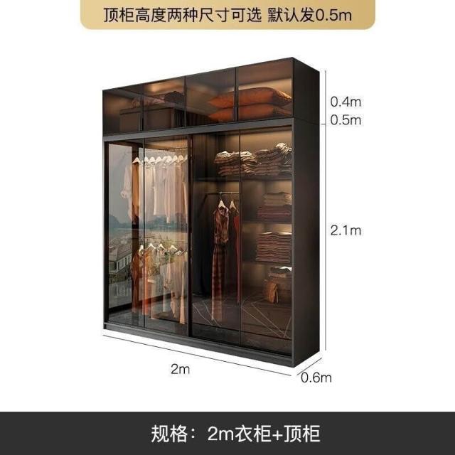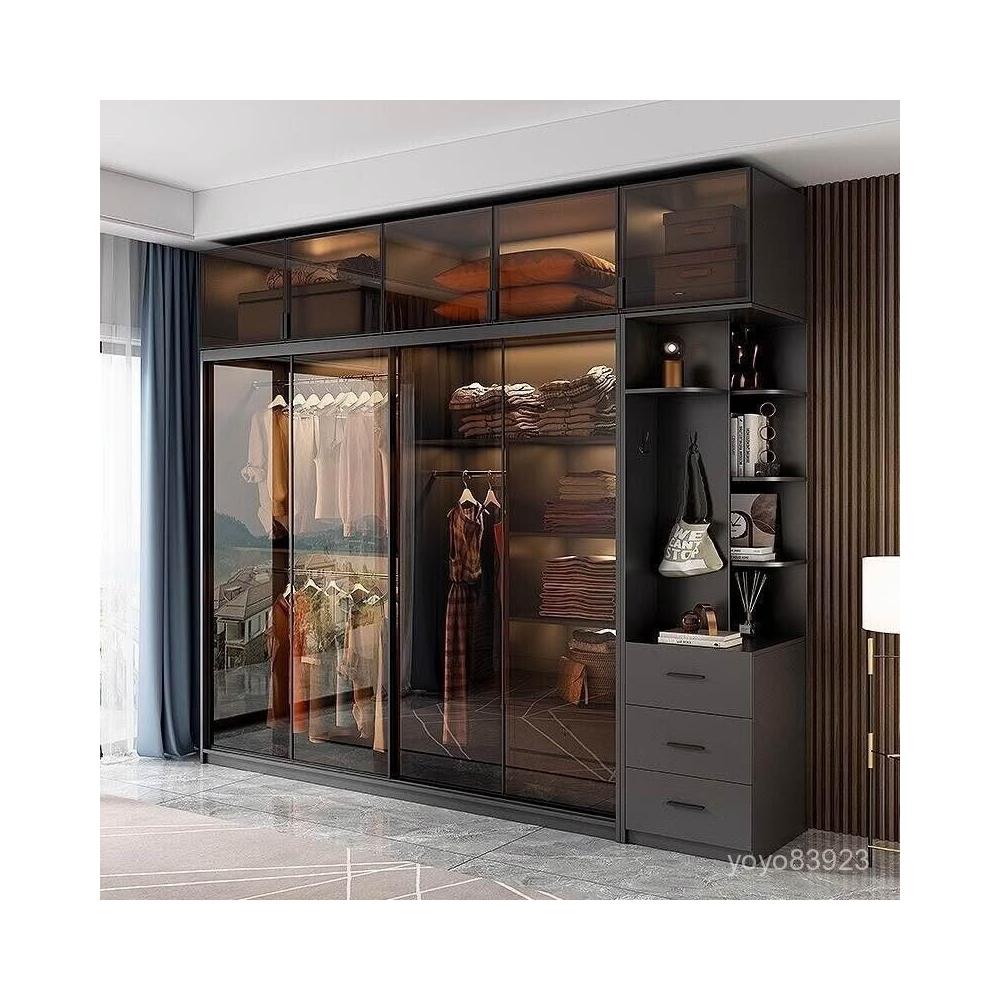 靈感家居 廠家直銷推拉門衣櫃家用臥室現代簡約輕奢意式極簡玻璃門滑門移門櫃子衣櫥 AWZL