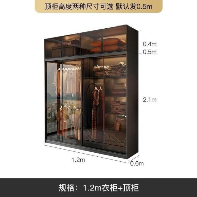 靈感家居 廠家直銷推拉門衣櫃家用臥室現代簡約輕奢意式極簡玻璃門滑門移門櫃子衣櫥 AWZL