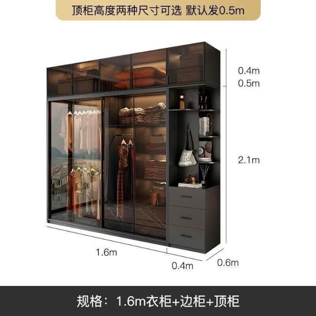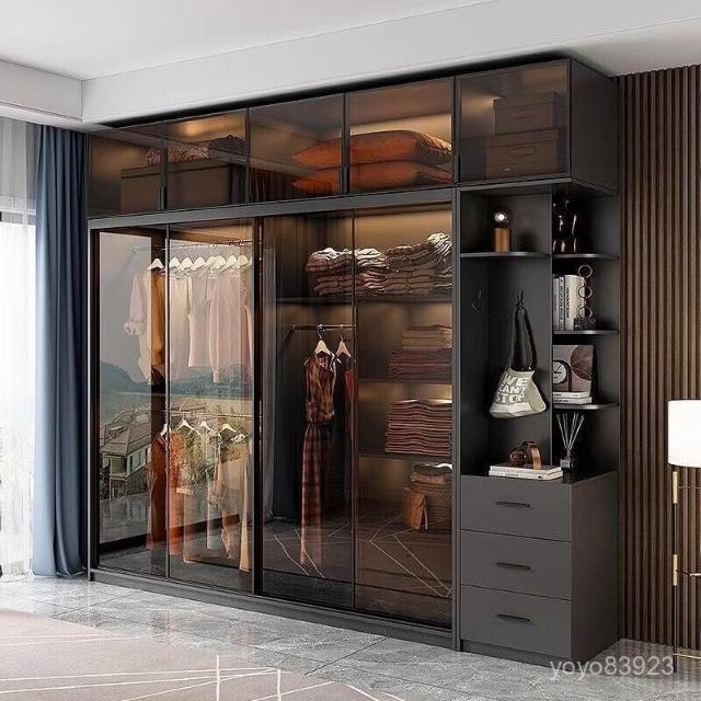 靈感家居 廠家直銷推拉門衣櫃家用臥室現代簡約輕奢意式極簡玻璃門滑門移門櫃子衣櫥 AWZL