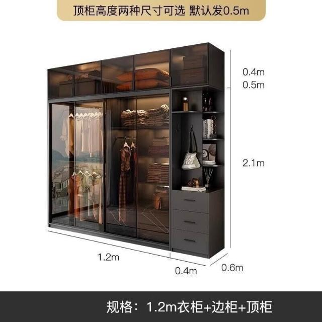 靈感家居 廠家直銷推拉門衣櫃家用臥室現代簡約輕奢意式極簡玻璃門滑門移門櫃子衣櫥 AWZL
