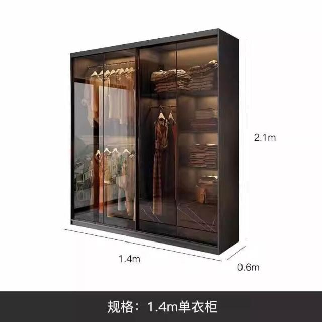 靈感家居 廠家直銷推拉門衣櫃家用臥室現代簡約輕奢意式極簡玻璃門滑門移門櫃子衣櫥 AWZL