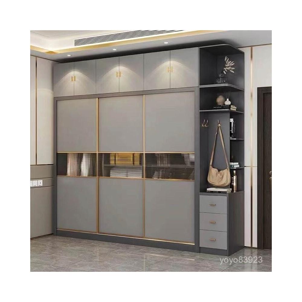 靈感家居 廠家直銷現代簡約家用臥室實木推拉門衣櫃主臥輕奢玻璃移門組閤整體大衣櫥 YVZI