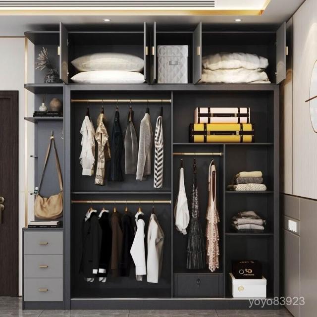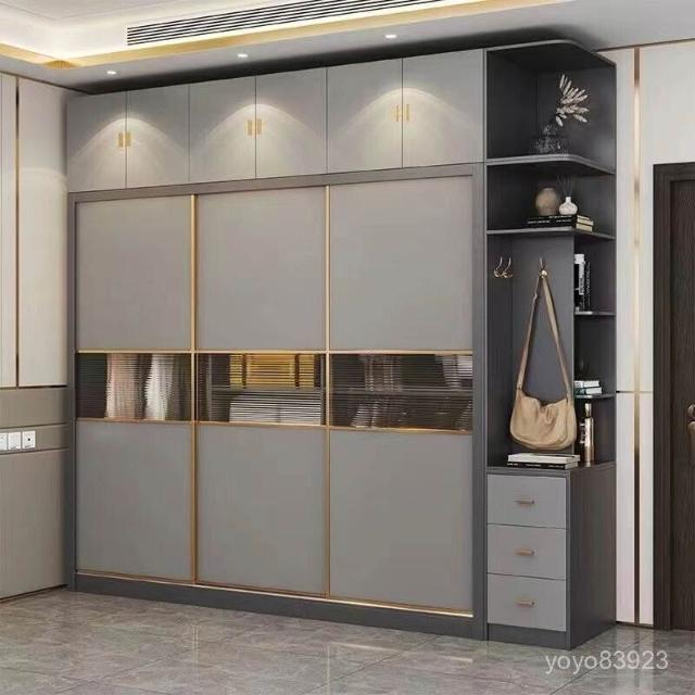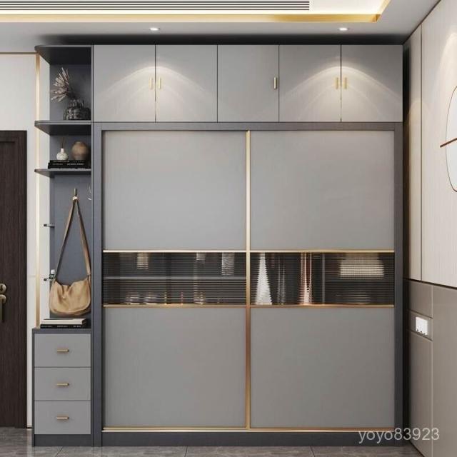靈感家居 廠家直銷現代簡約家用臥室實木推拉門衣櫃主臥輕奢玻璃移門組閤整體大衣櫥 YVZI