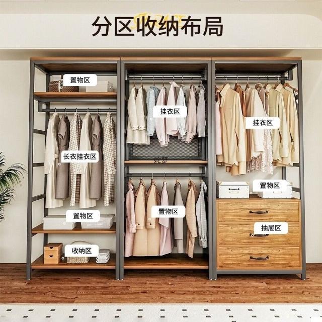 靈感家居 廠家直銷開放式衣櫃 自製步入式衣帽間架子 組閤衣櫃 貨架掛衣架 落地臥室衣帽架 開放式衣櫃 衣櫥衣櫃 衣櫥衣架置物櫃