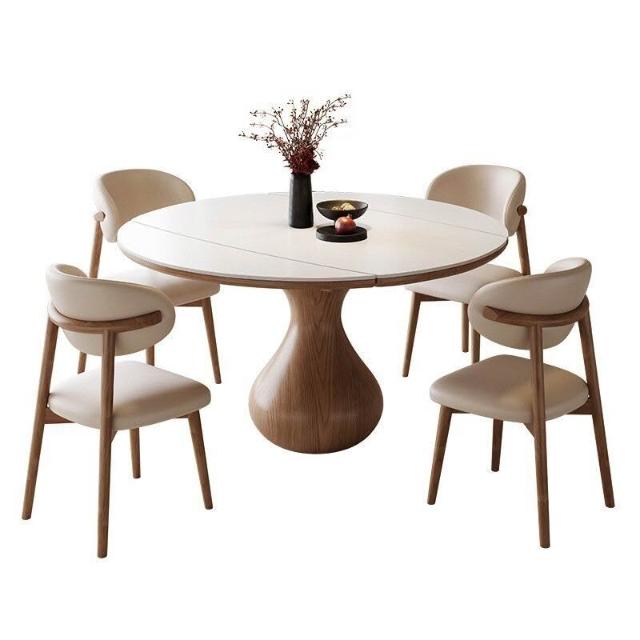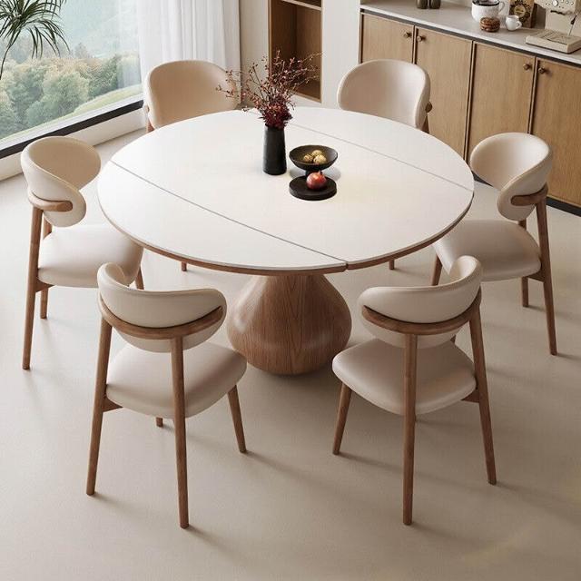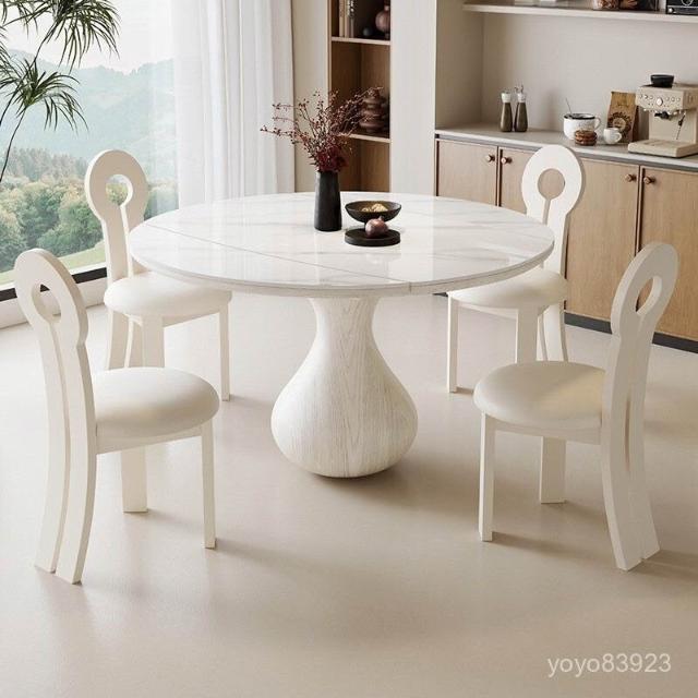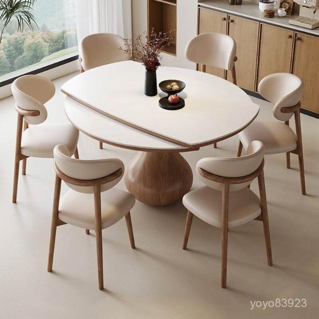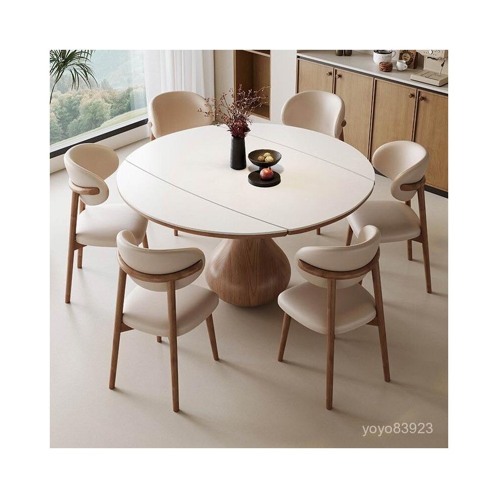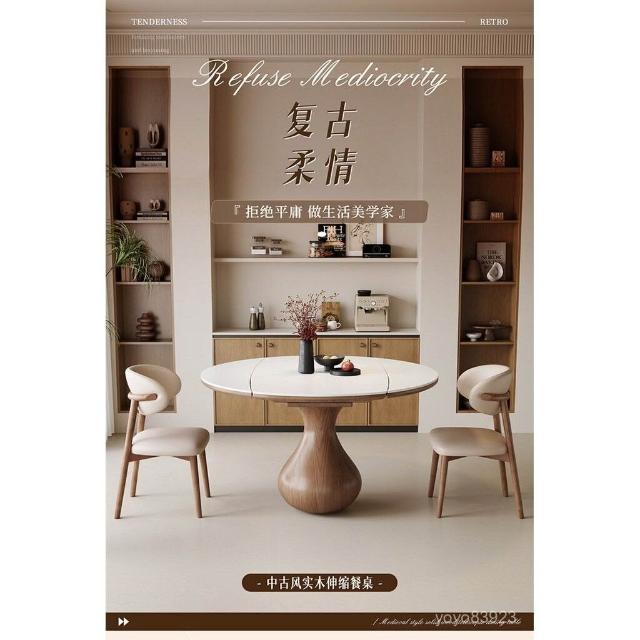 靈感家居 廠家直銷中古風巖闆實木餐桌椅2025新款家用簡約可伸縮折疊喫飯桌可變圓桌 VYOQ