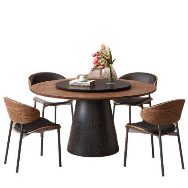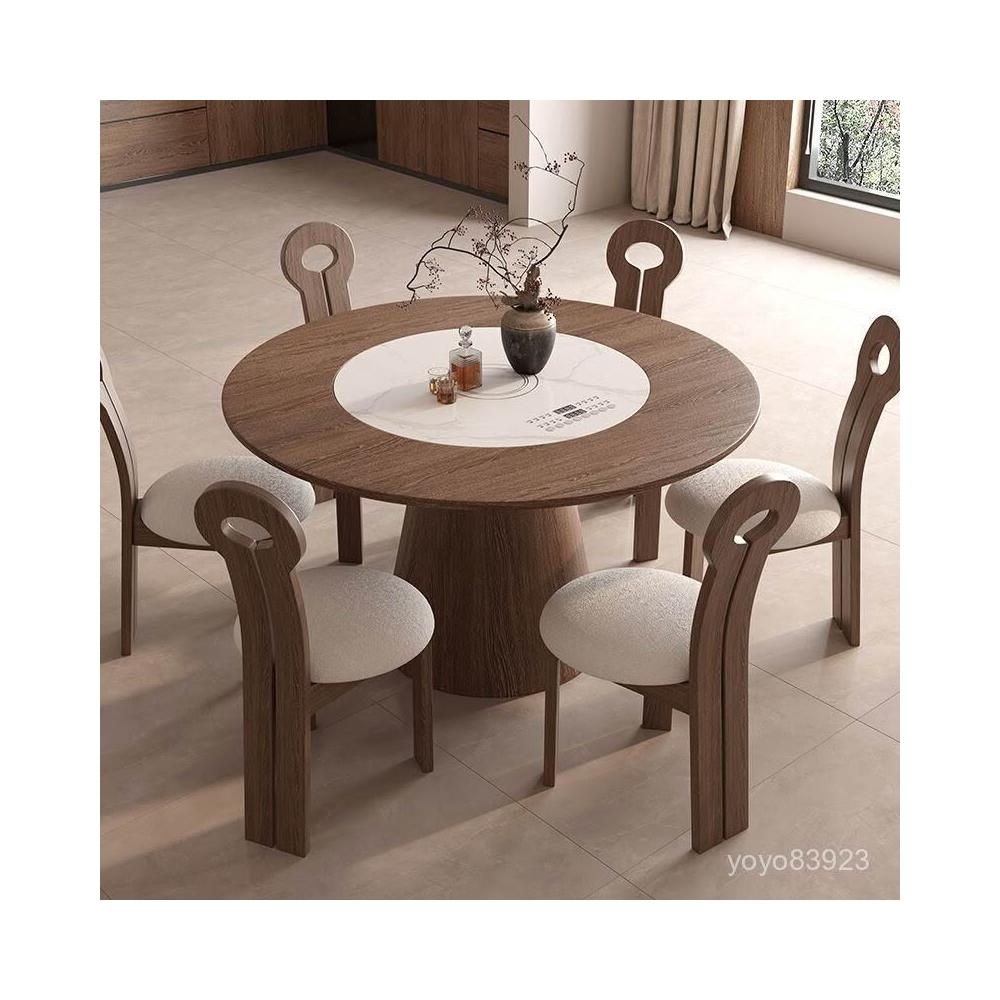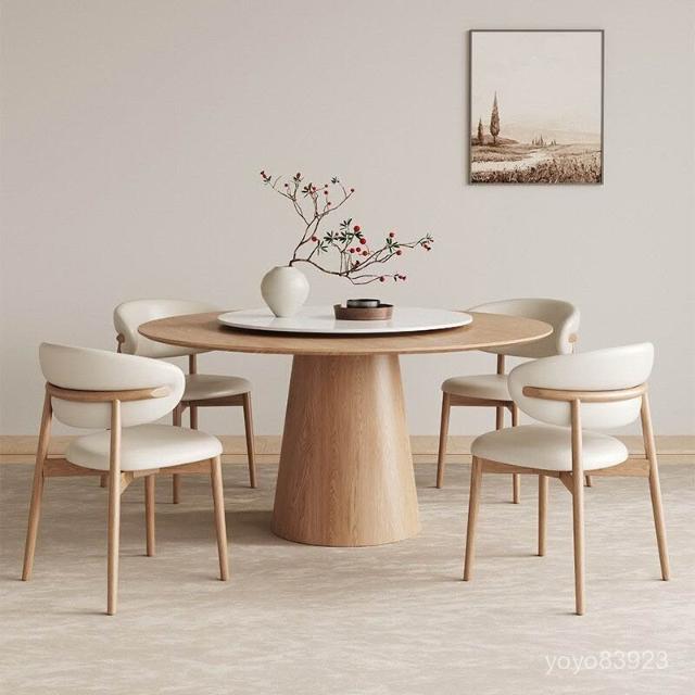 靈感家居 廠家直銷實木餐桌椅組閤家用中古風小戶型餐廳圓形飯桌法式複古白蠟木圓桌 B1FS