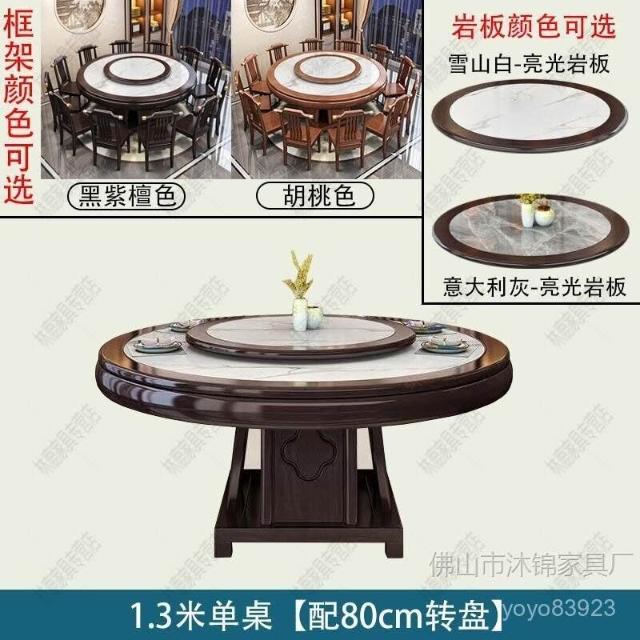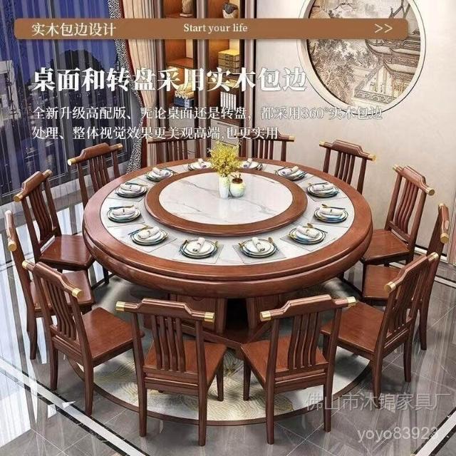 靈感家居 廠家直銷新中式全實木巖闆餐桌椅組閤2米大圓桌包邊轉盤家用飯店酒店飯桌 PREB
