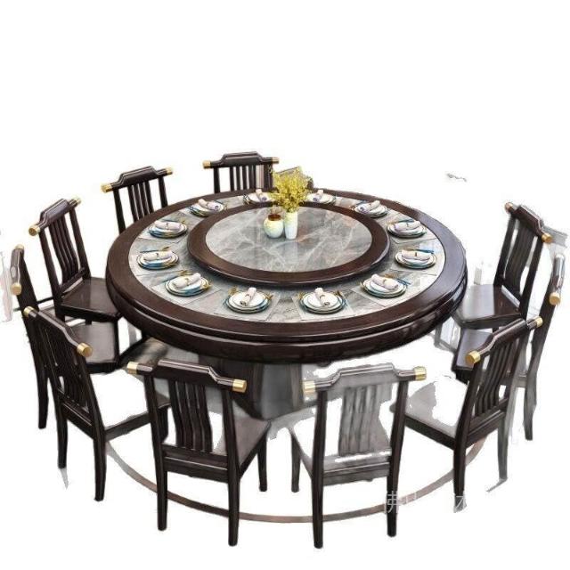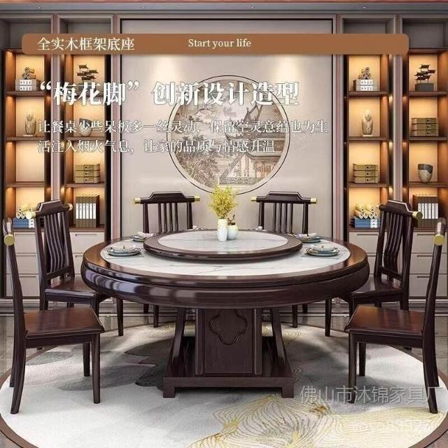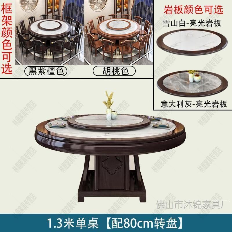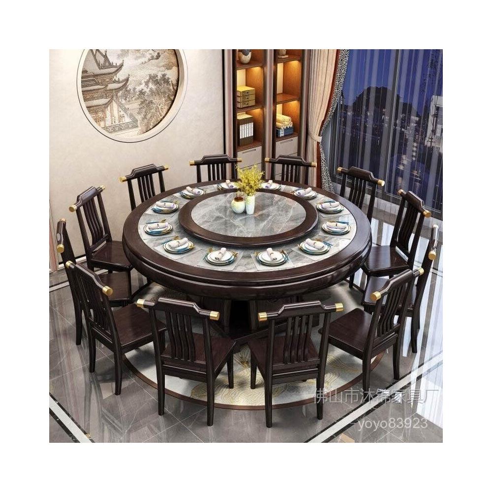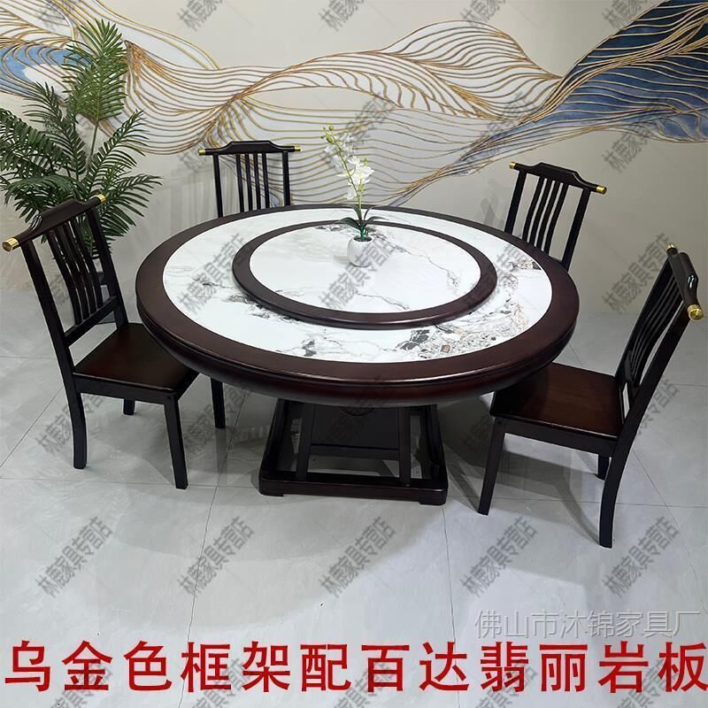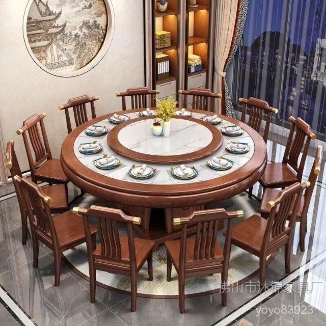 靈感家居 廠家直銷新中式全實木巖闆餐桌椅組閤2米大圓桌包邊轉盤家用飯店酒店飯桌 PREB