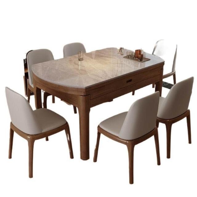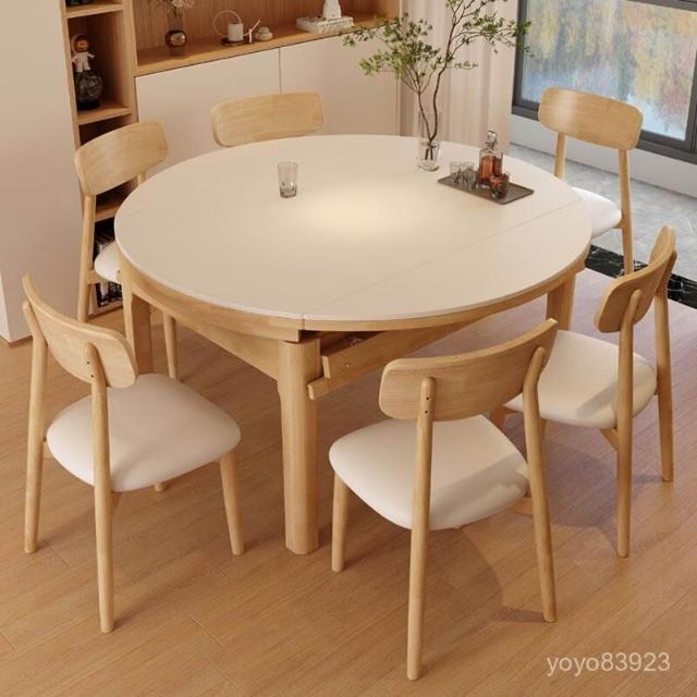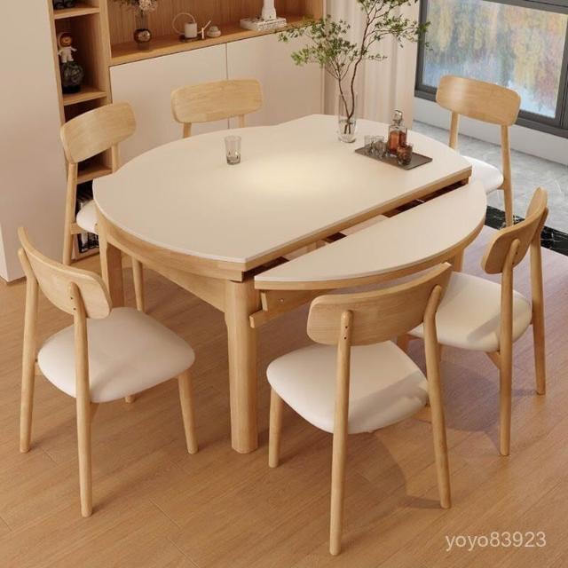 靈感家居 廠家直銷實木巖闆餐桌椅家用原木色現代簡約小戶型奶油風方圓兩用伸縮桌子 Q9TJ