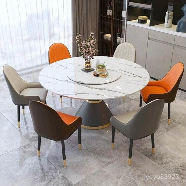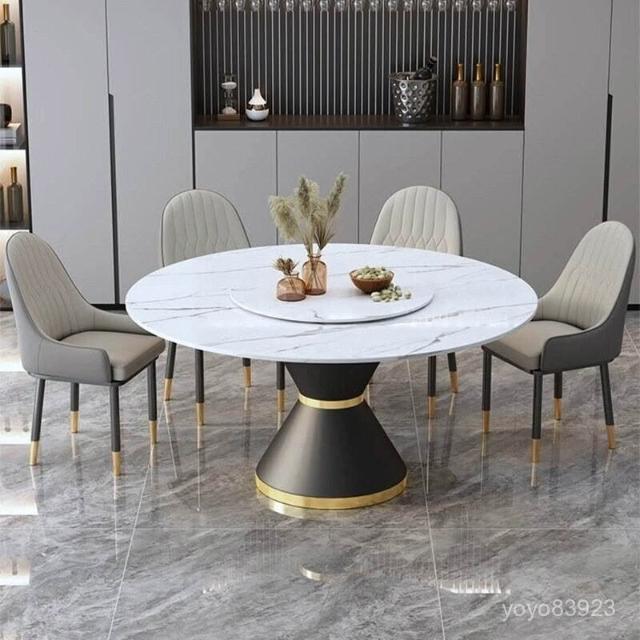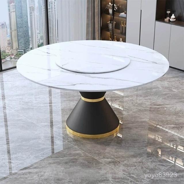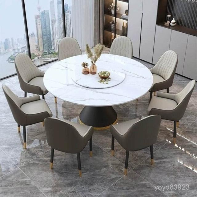 靈感家居 廠家直銷現代簡約巖闆餐桌椅組閤家用大圓桌酒店宴會餐廳飯店帶轉盤圓形桌 IAWU