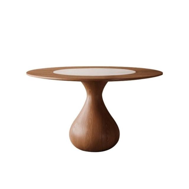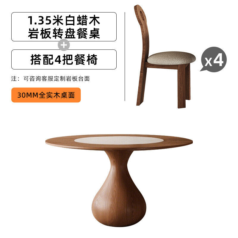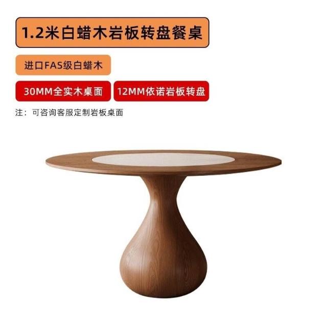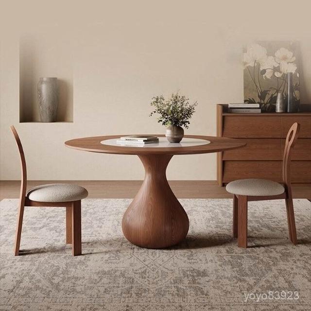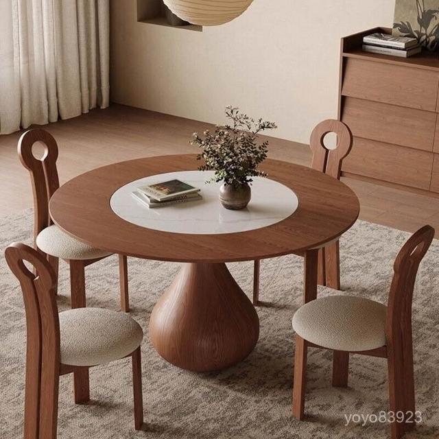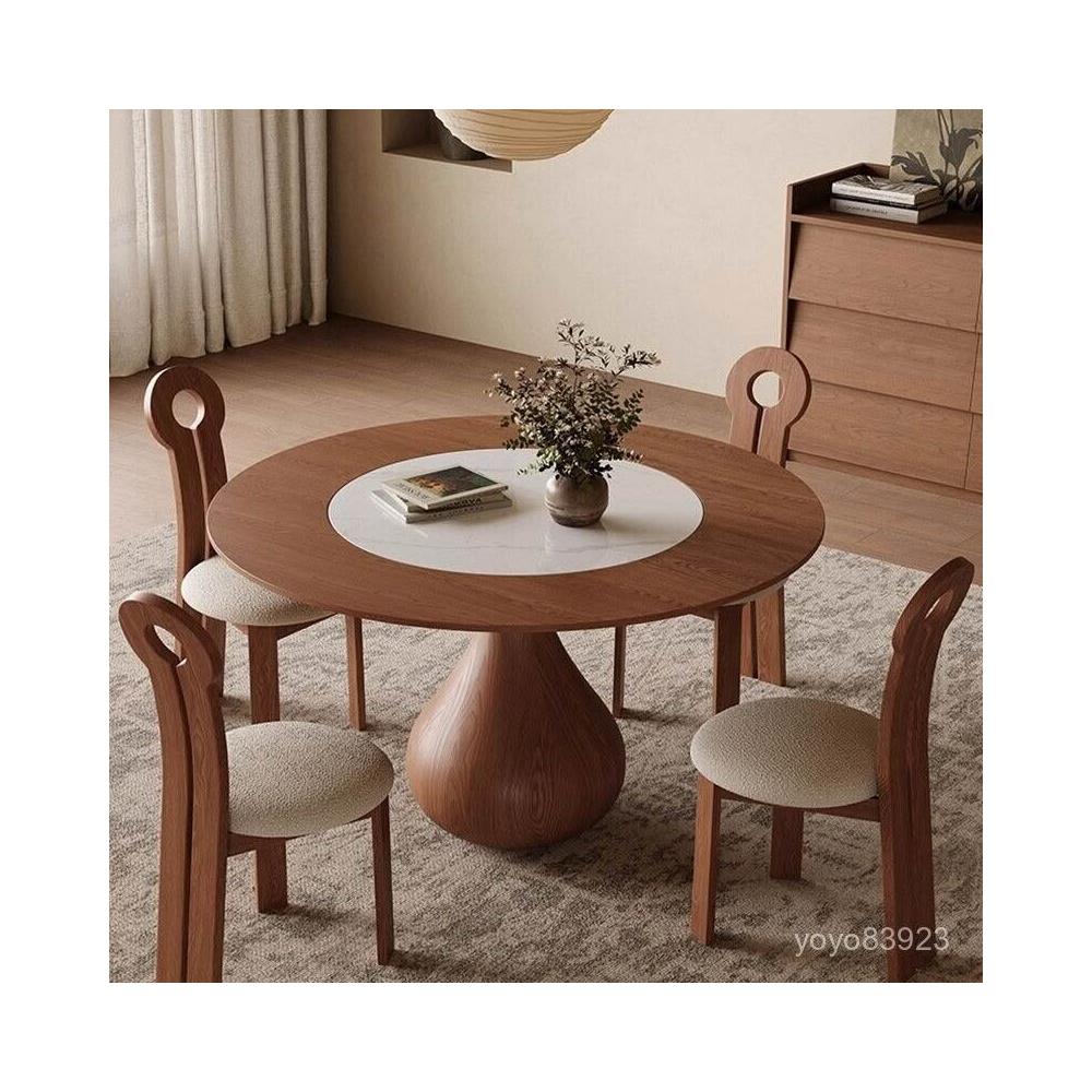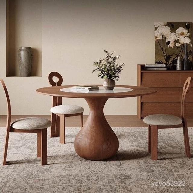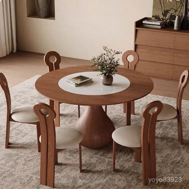靈感家居 廠家直銷法式複古風實木圓形內嵌圓餐桌椅帶轉盤中古風白蠟木紋家用圓飯桌 MNFZ