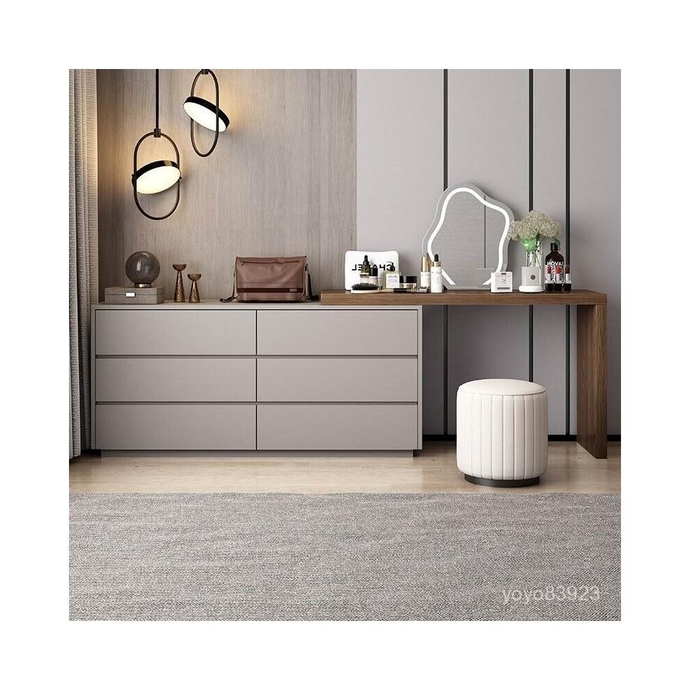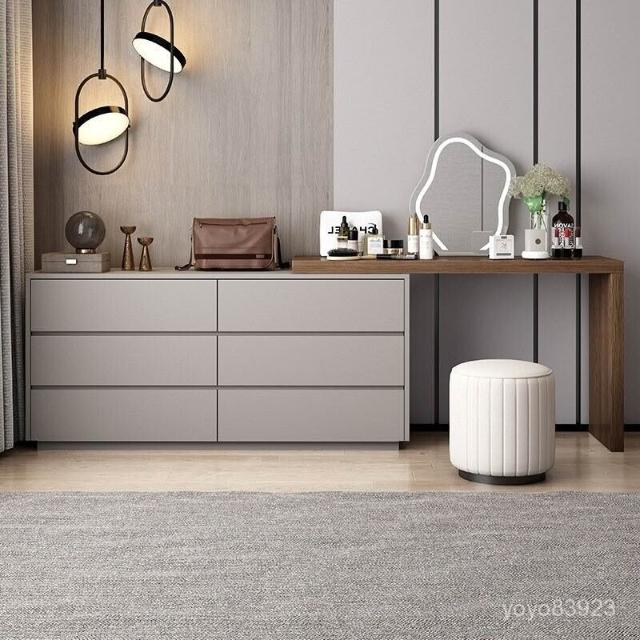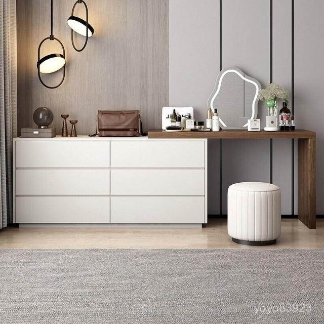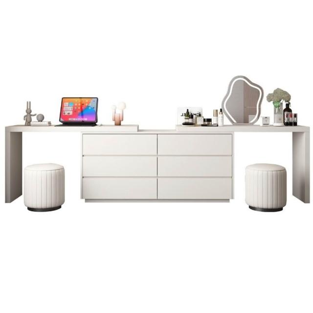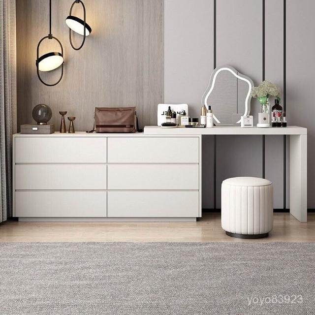 靈感家居 熱銷爆款現代簡約奶油色梳妝臺收納櫃書桌一體瓢窗化妝桌轉角梳妝桌妝鏡凳 NJCD
