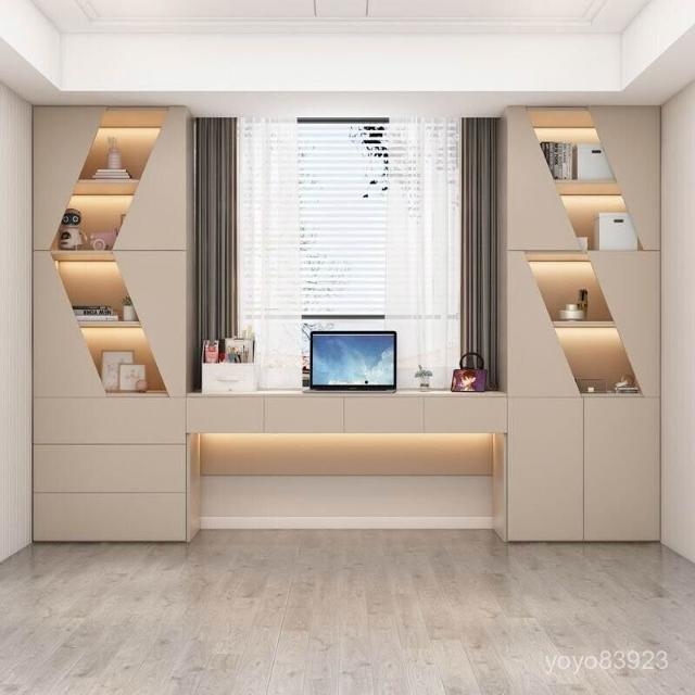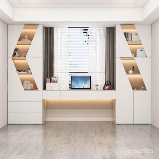靈感家居 廠家直銷書桌書櫃一體桌家用電腦桌臥室臺式輕奢辦公桌子工作臺學生學習桌 UAQQ