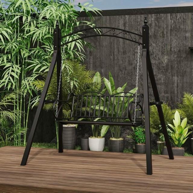 靈感家居 庭院雙人秋千家用鐵藝搖椅陽臺休閑椅歐式搖籃椅室內兒童蕩秋千