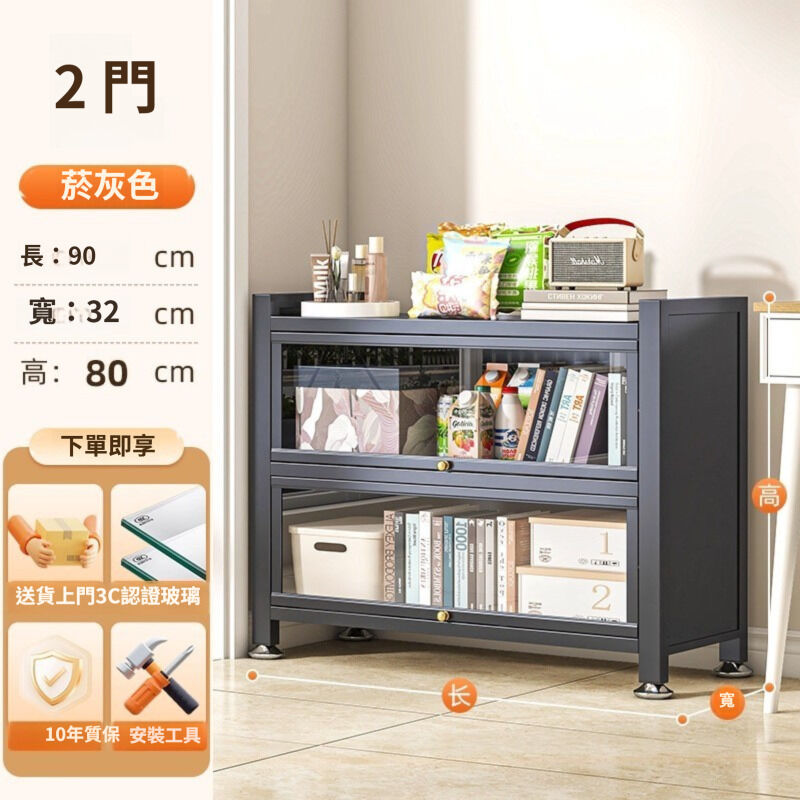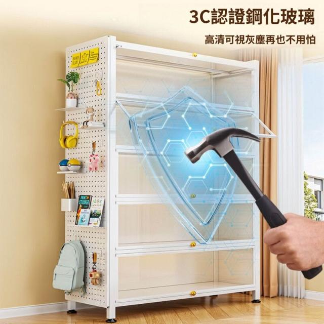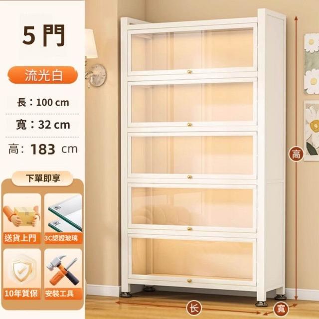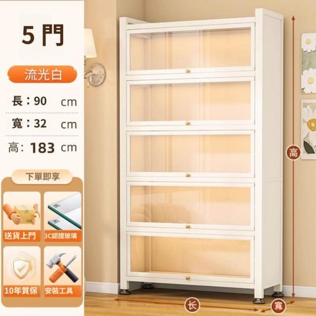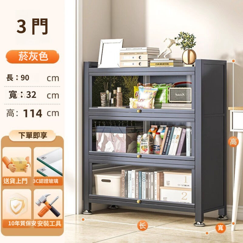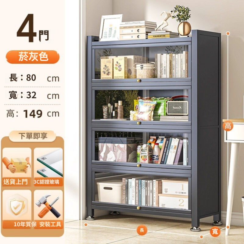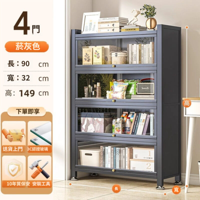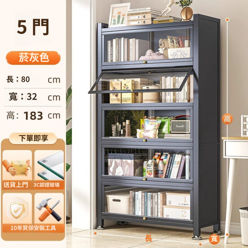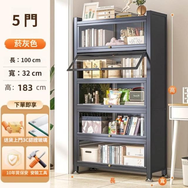 靈感家居 鋼製書架透明玻璃帶門書櫃展示櫃防塵手辦櫃鐵皮收納模型谷子痛櫃