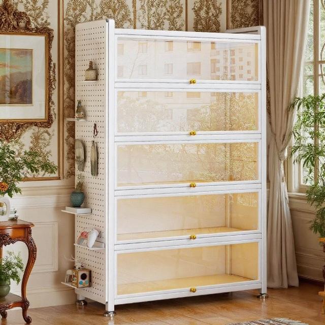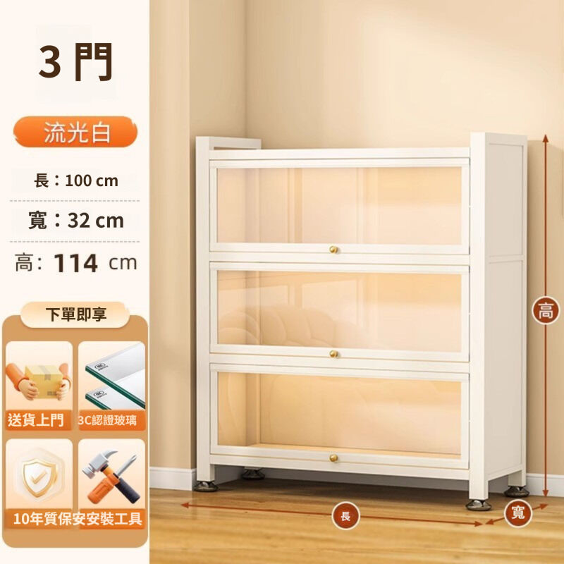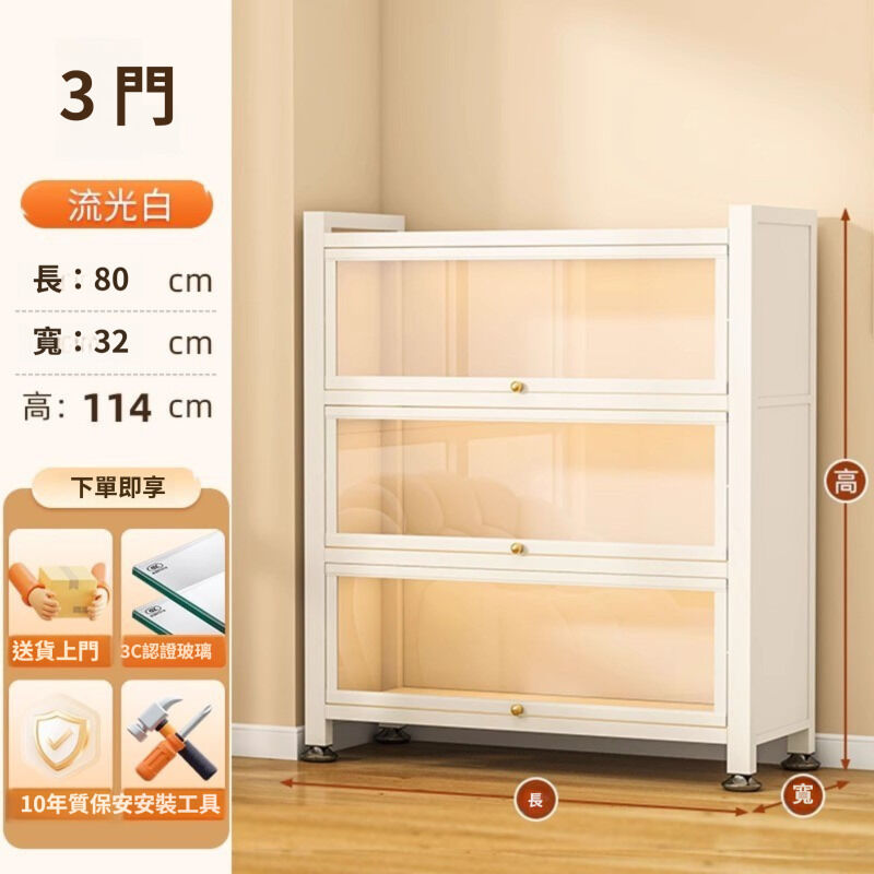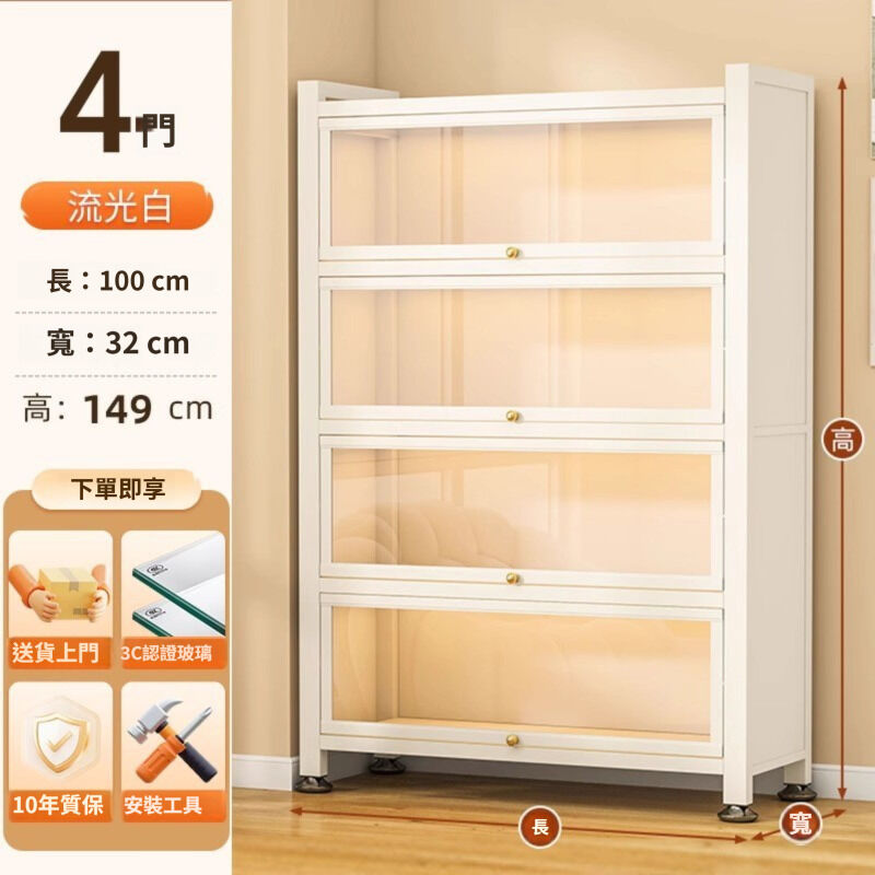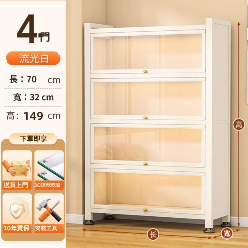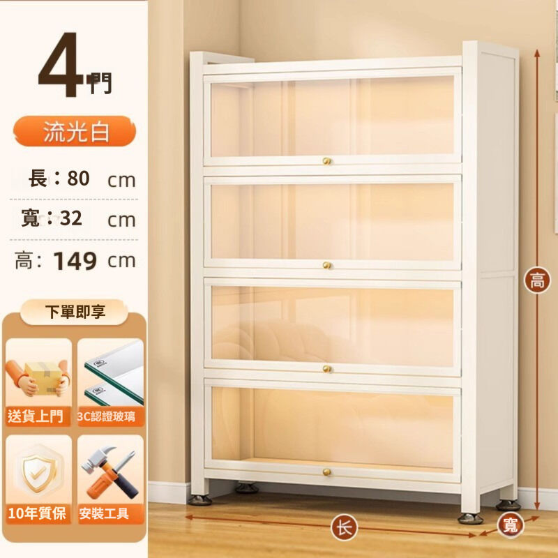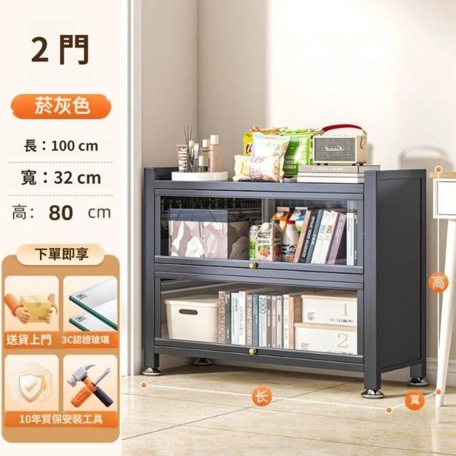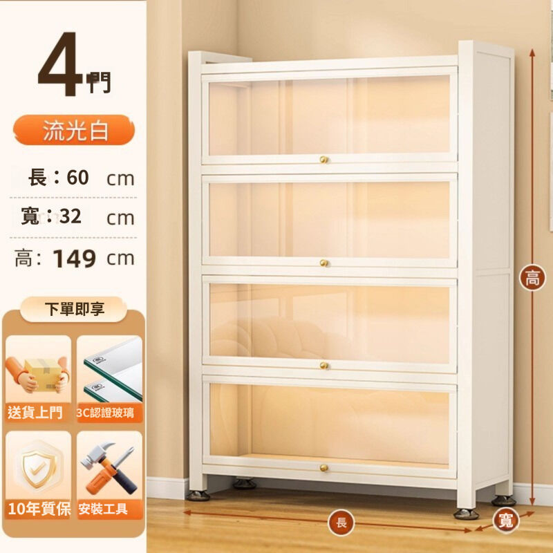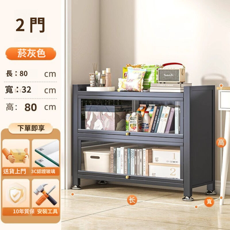 靈感家居 鋼製書架透明玻璃帶門書櫃展示櫃防塵手辦櫃鐵皮收納模型谷子痛櫃